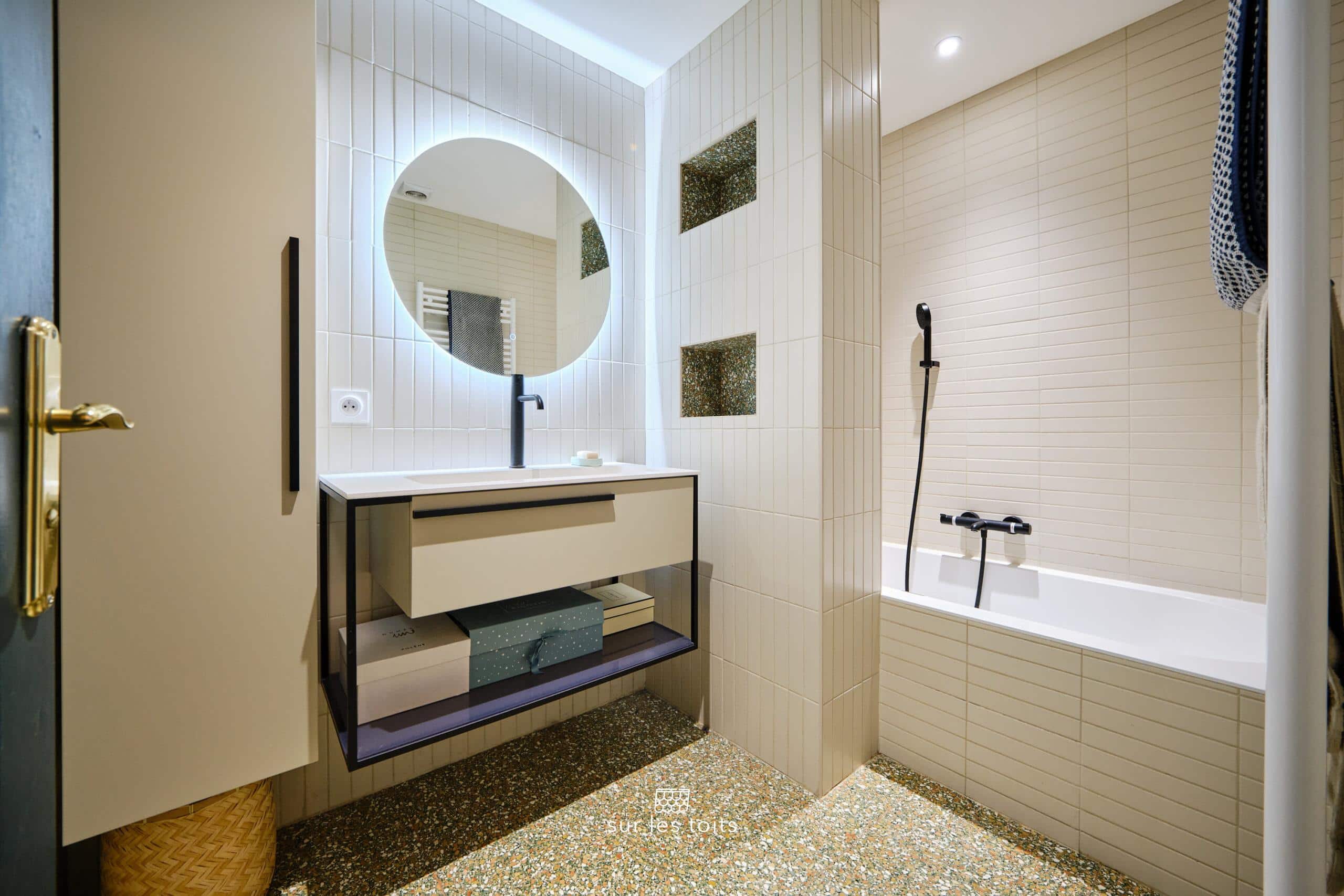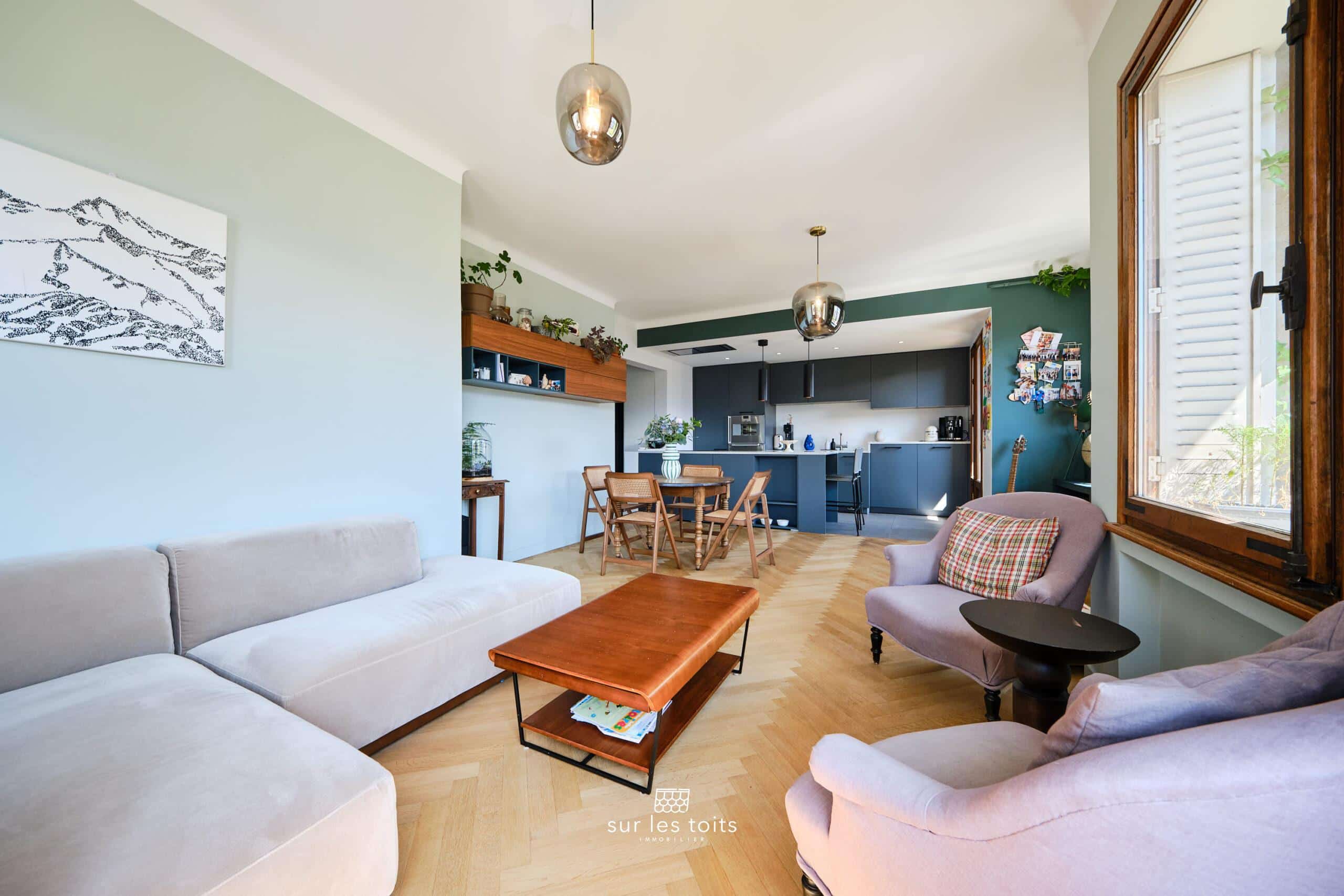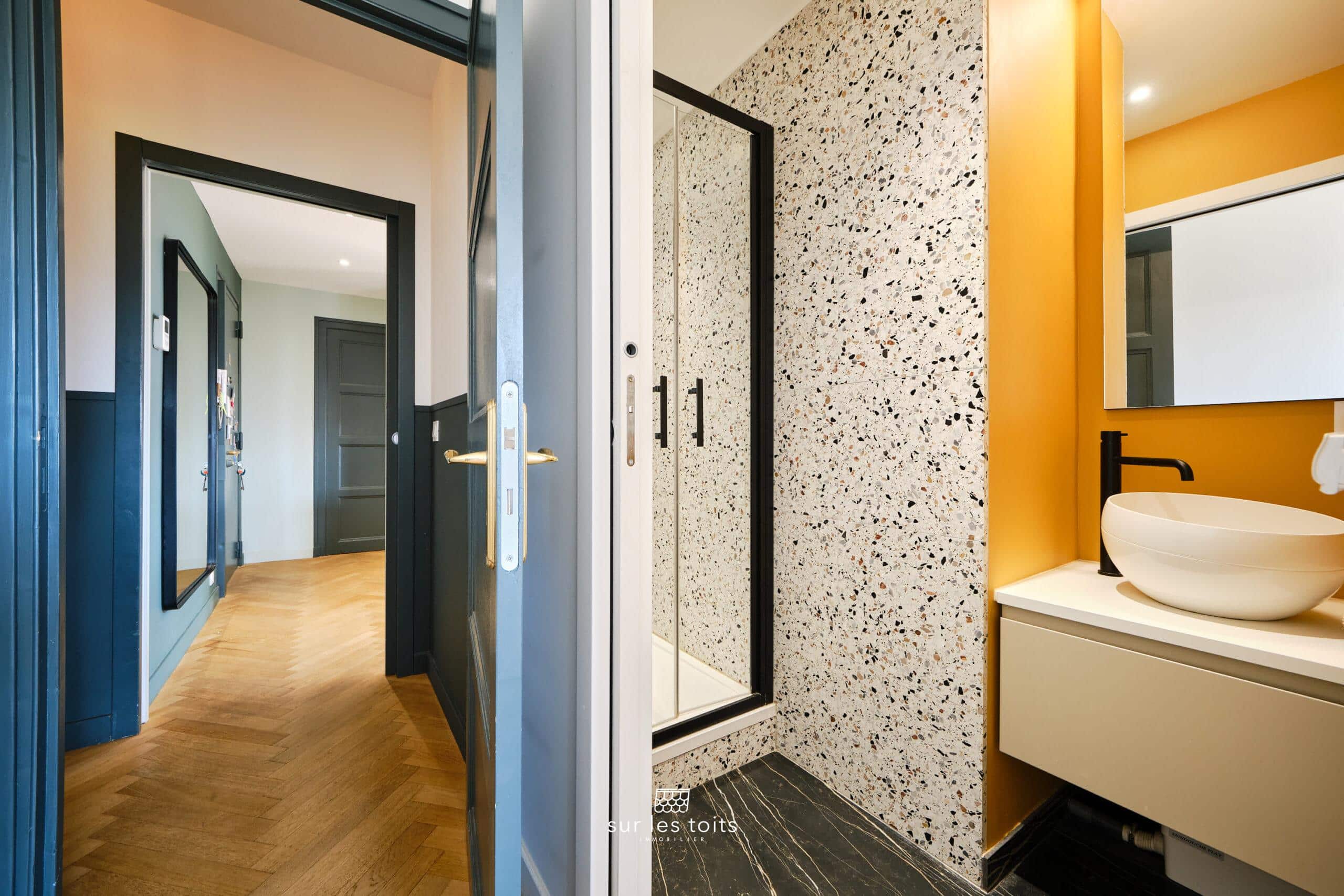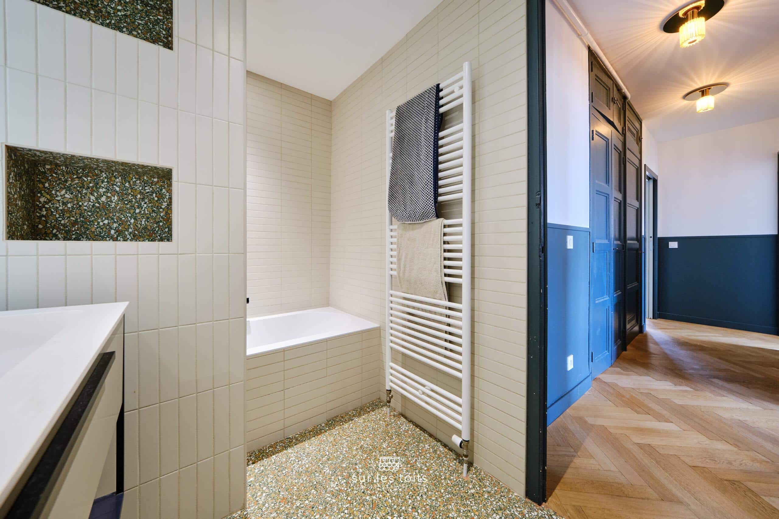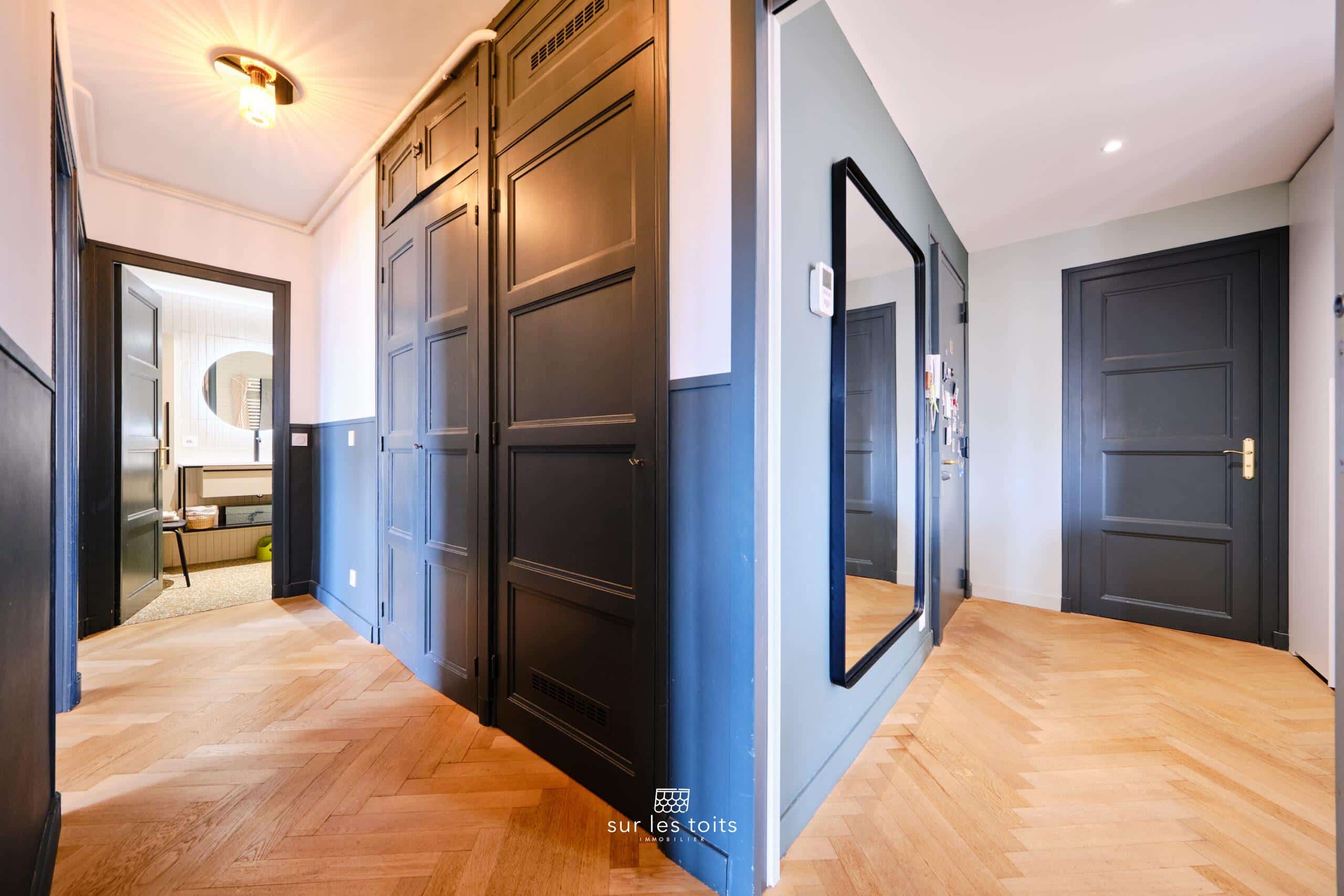 Entièrement rénové avec des matériaux haut de gamme, il séduit par la qualité de ses prestations, notamment un parquet massif en bâtons rompus dans les pièces de vie et du terrazzo élégant dans les pièces d’eau.
