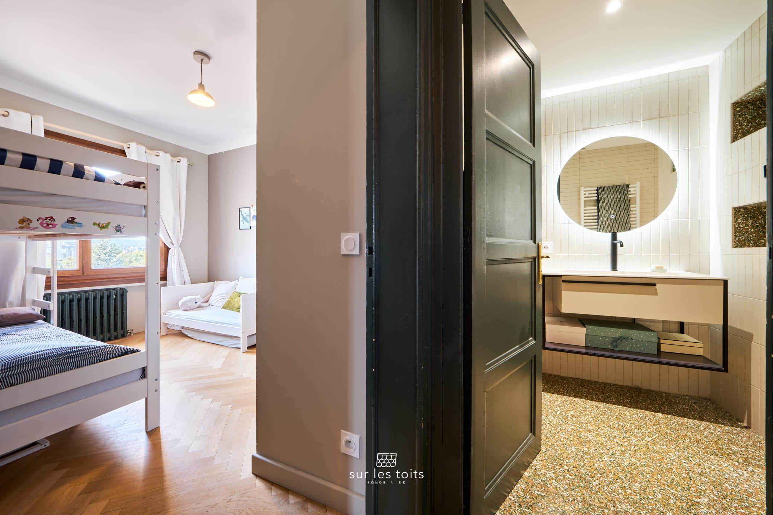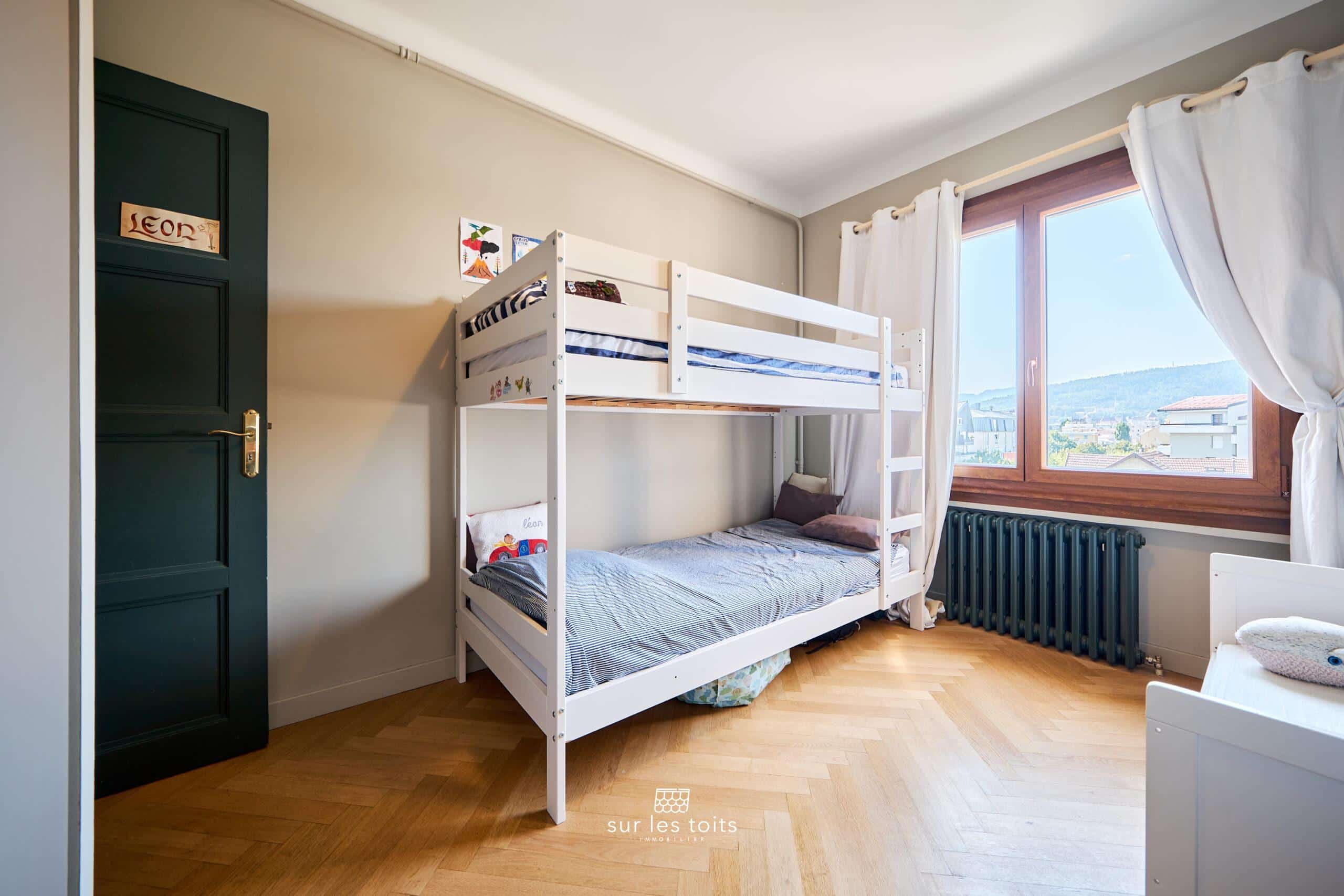 L’appartement propose un espace nuit bien distinct, garantissant calme et intimité. Il se compose de trois chambres, dont une suite parentale avec sa salle d’eau privative et des rangements intégrés, deux chambre et une confortable salle de bains ainsi que d’un coin buanderie.