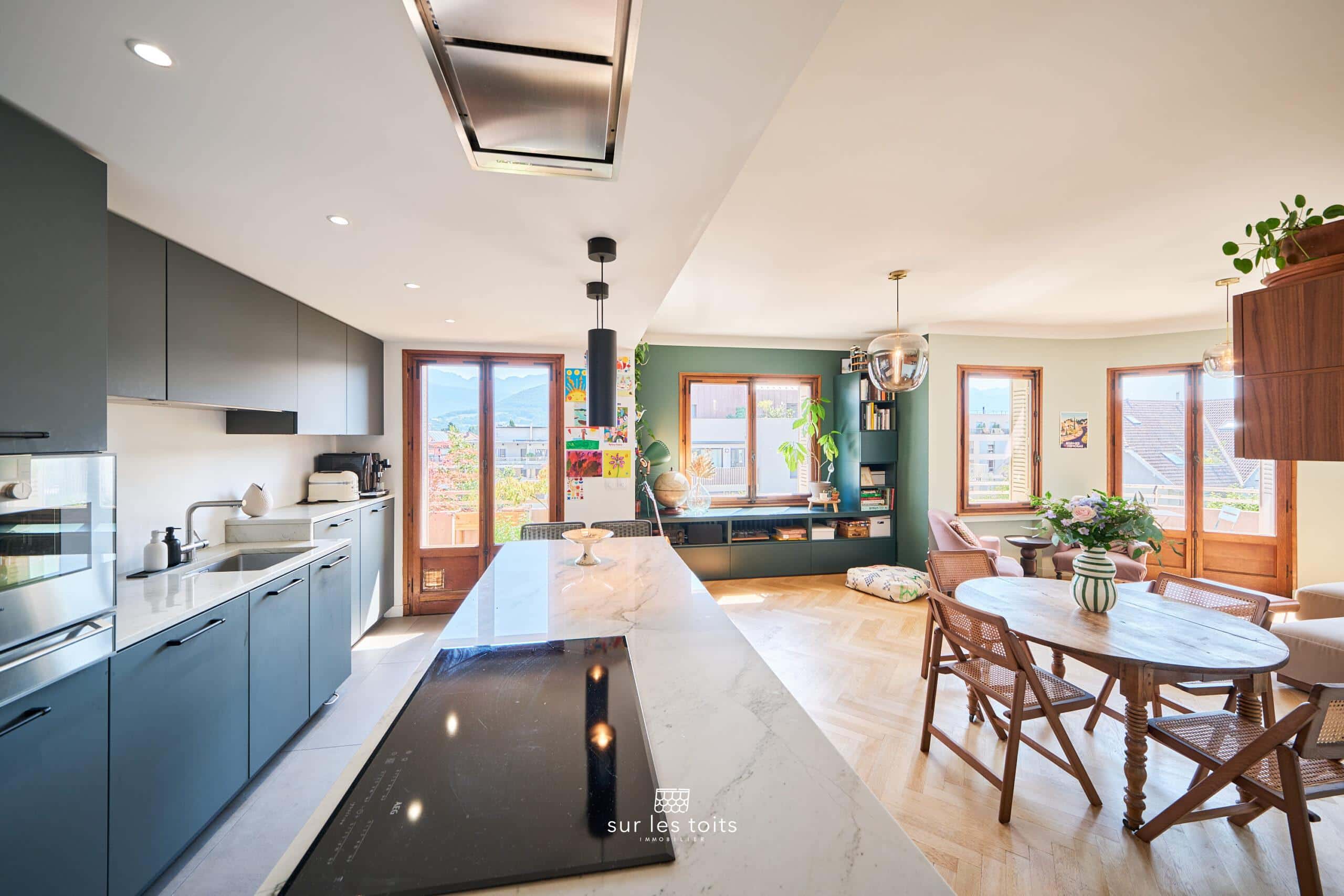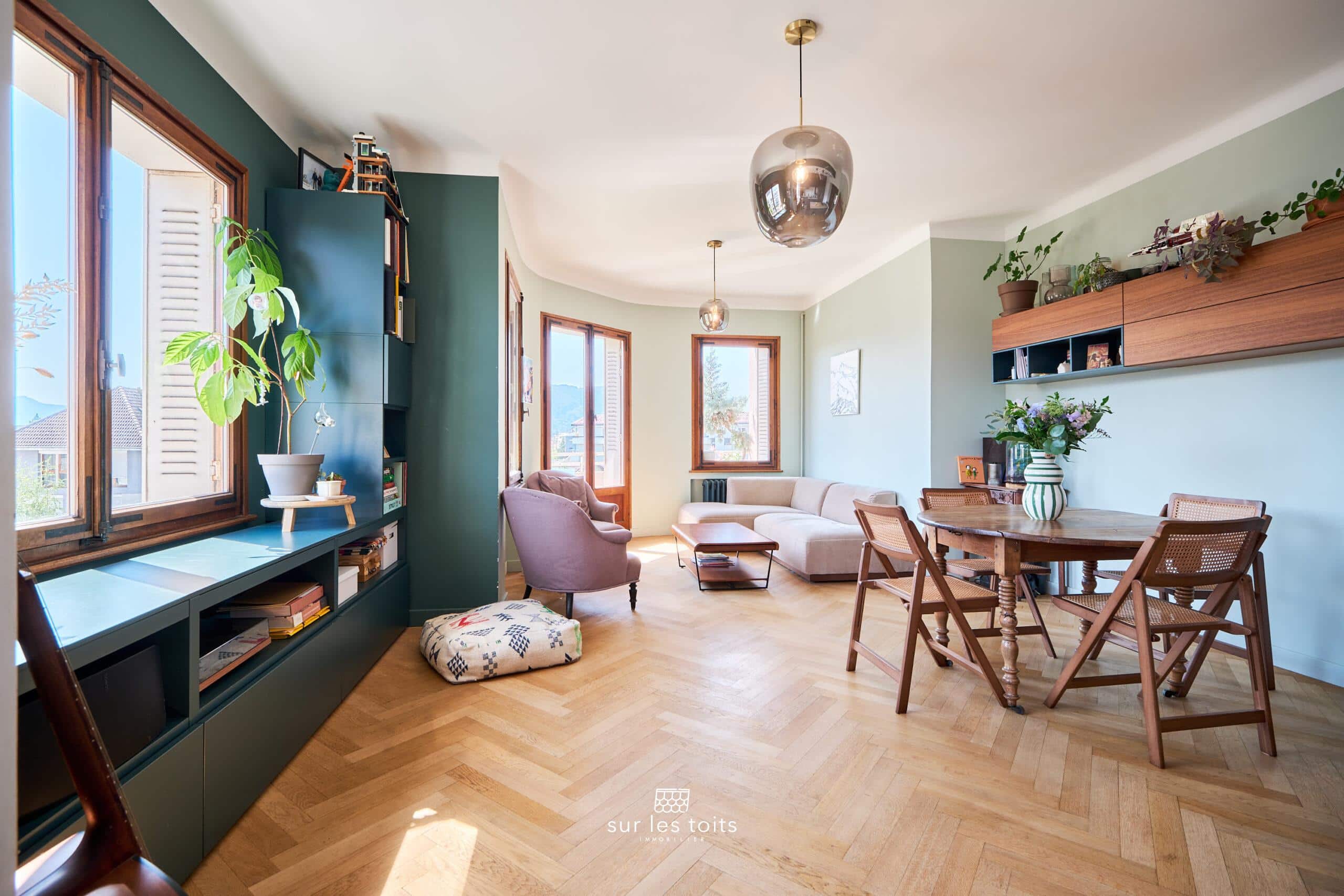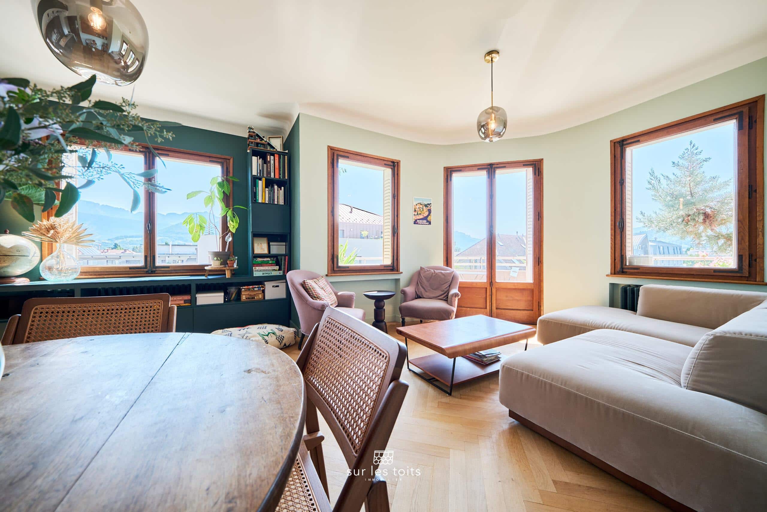 L’agence sur les toits vous présente en exclusivité « Atlas » superbe appartement de 85m² T4 situé à Annecy dans le quartier recherché des Romains et de Courier. Installé en étage élevé d’un immeuble avec ascenseur, ce bien bénéficie d’une vue exceptionnelle dégagée sur les montagnes et le château, véritable atout qui donne tout son caractère à l’appartement.