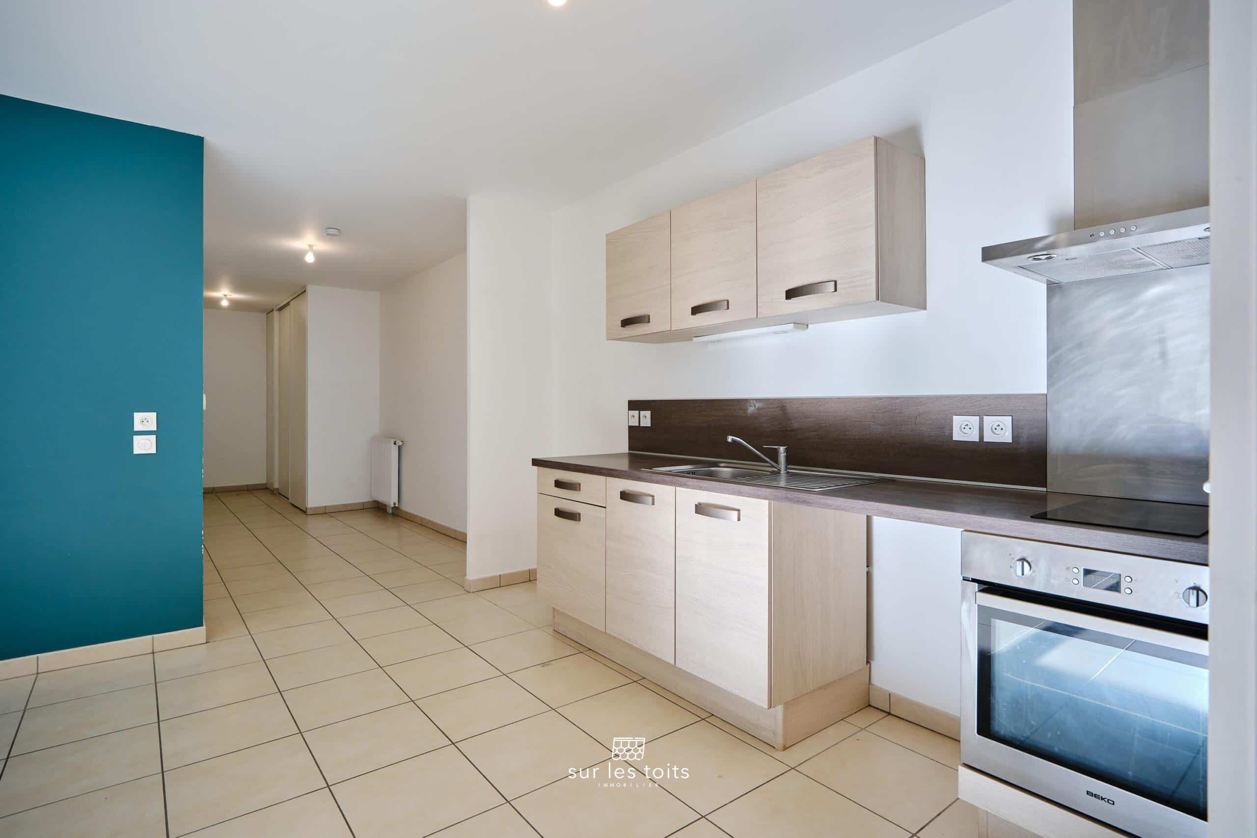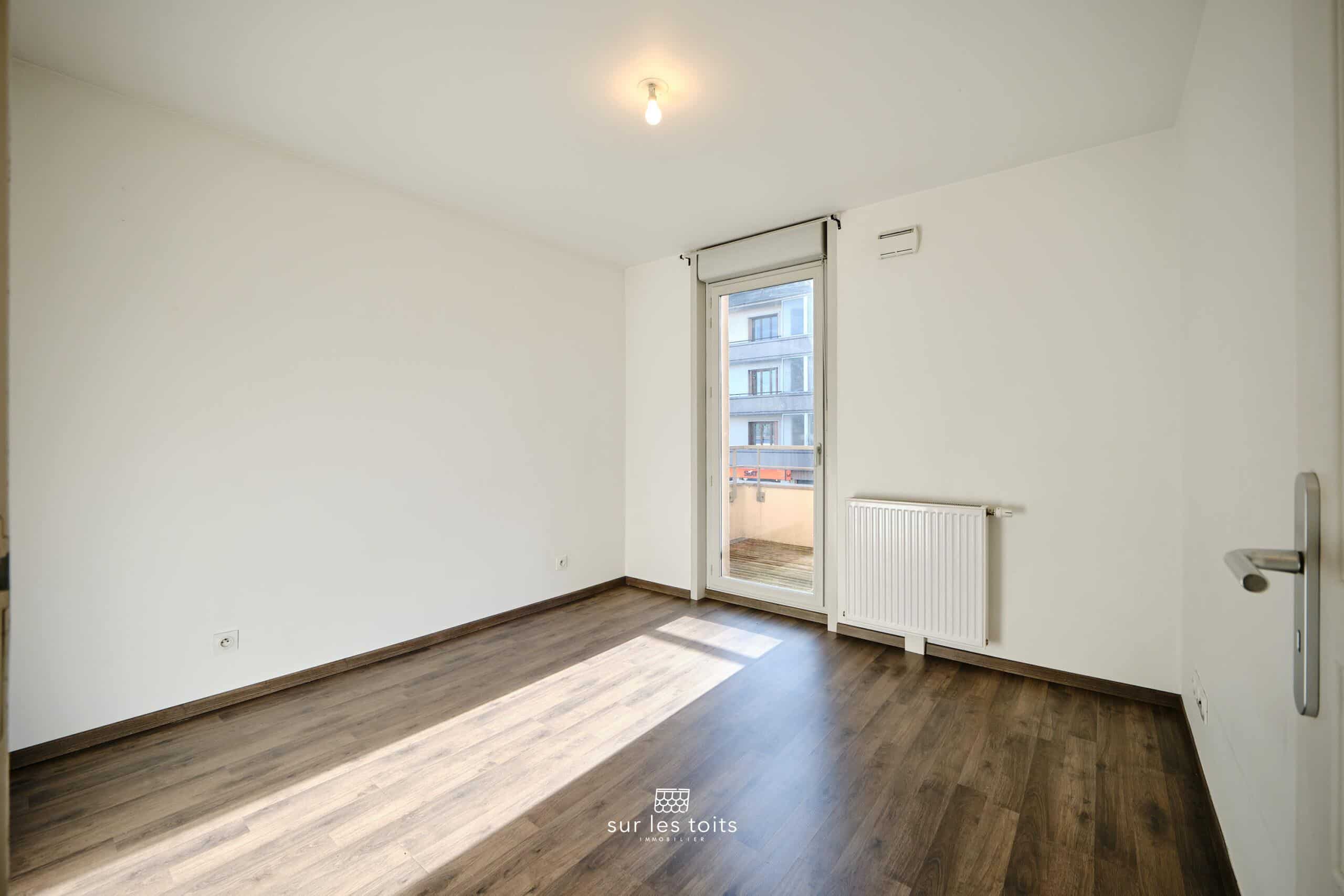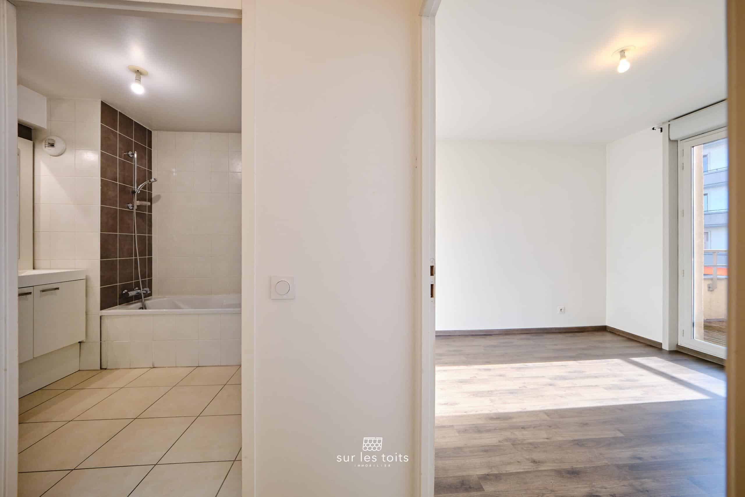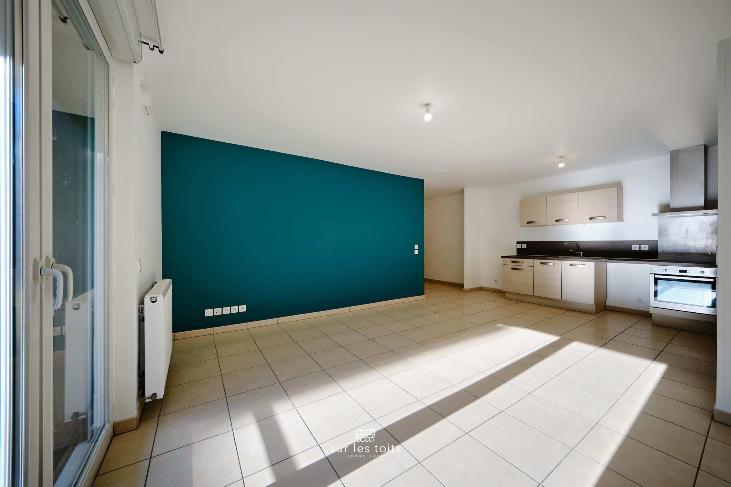 L’entrée, spacieuse et fonctionnelle, dispose d’un placard intégré ainsi que d’un couloir pouvant accueillir un espace bureau ou un couchage d’appoint. Elle mène à une grande pièce de vie lumineuse, ouverte sur une terrasse d’environ 10 m², un véritable atout en centre-ville. La cuisine Mobalpa équipée est ouverte sur le séjour et bénéficie d’une exposition plein Sud.