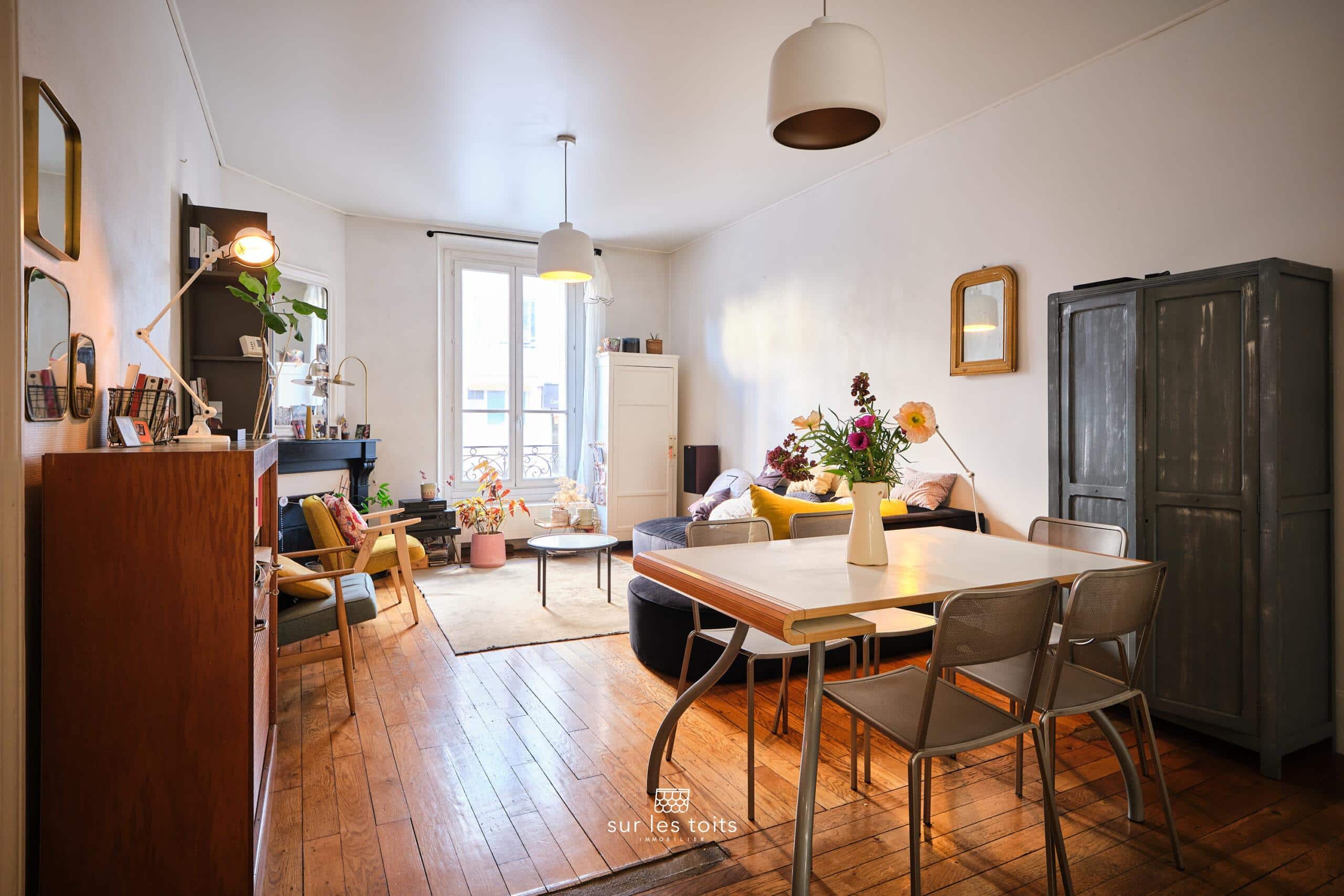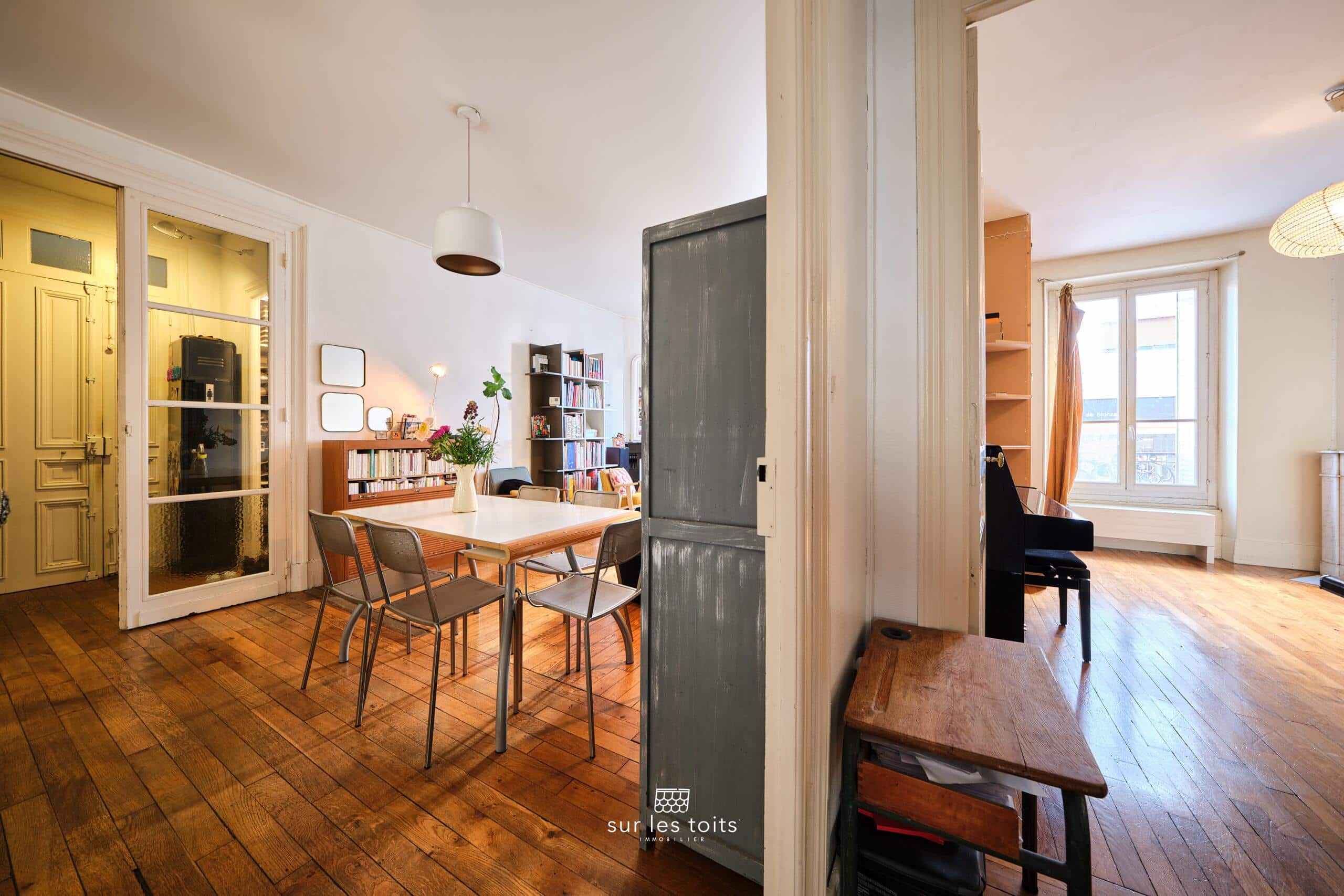 Dès l’entrée, le charme de l’ancien opère : belle hauteur sous plafond, parquets massifs, cheminées en marbre… Une atmosphère rétro et authentique qui séduira les amateurs de biens de caractère.