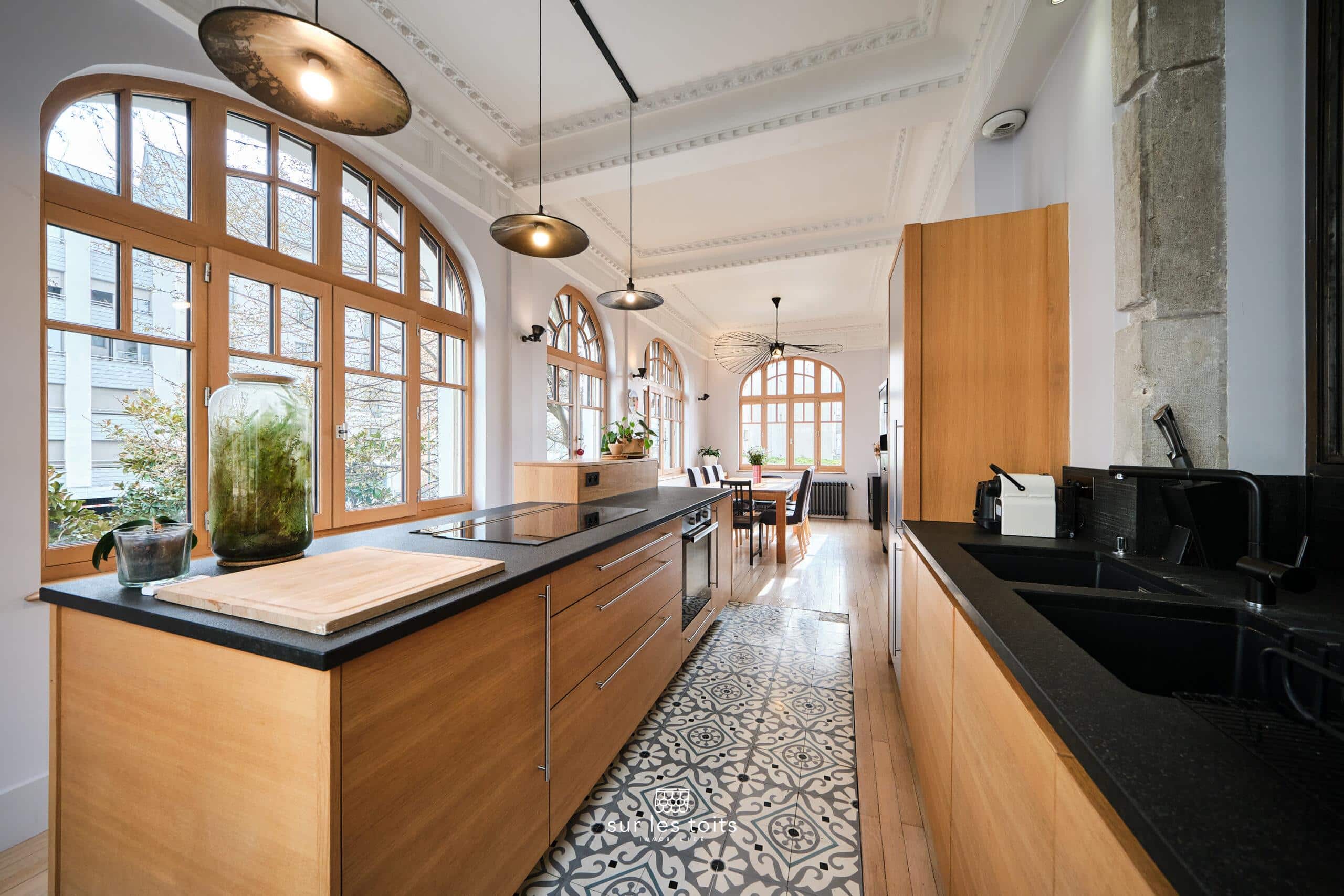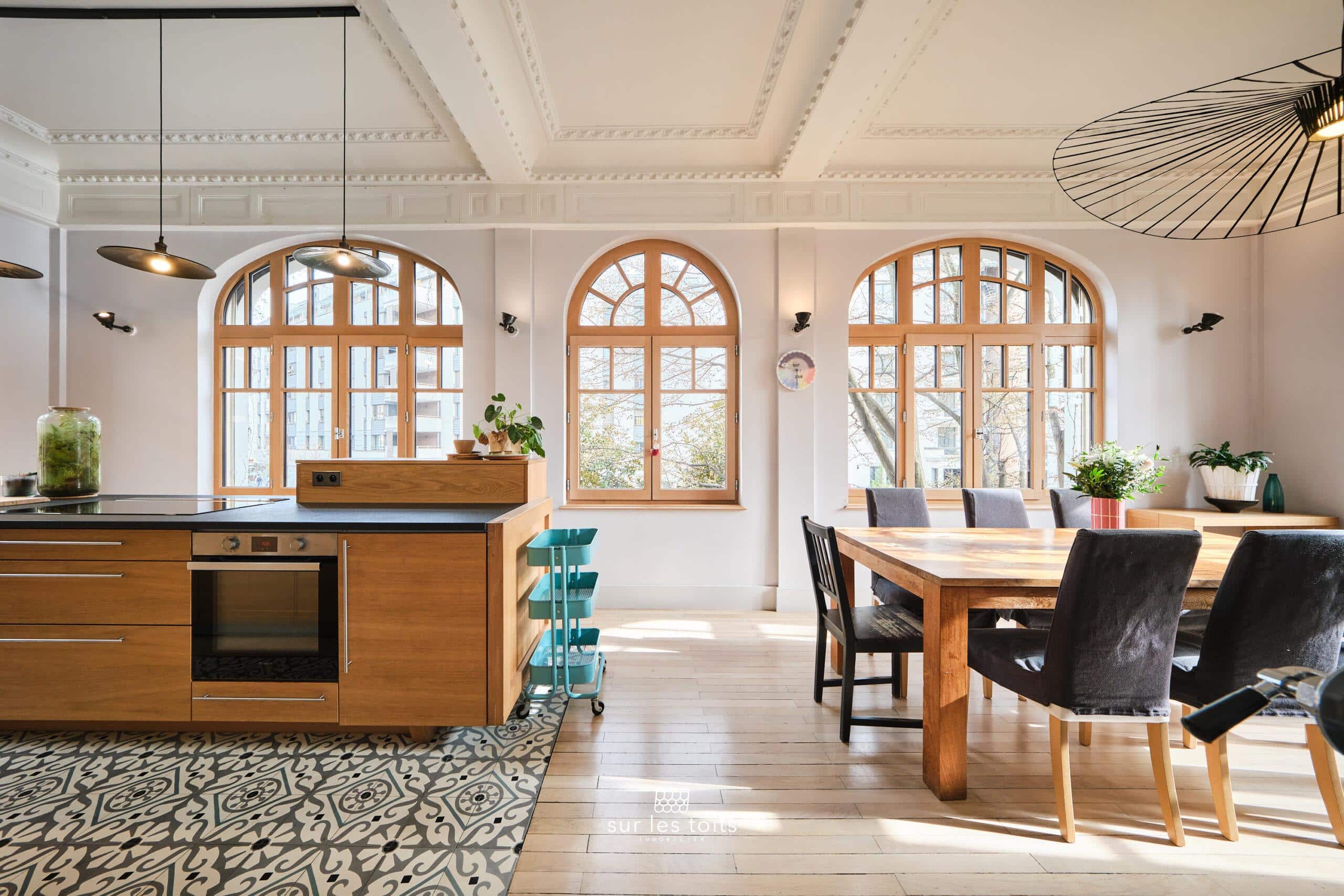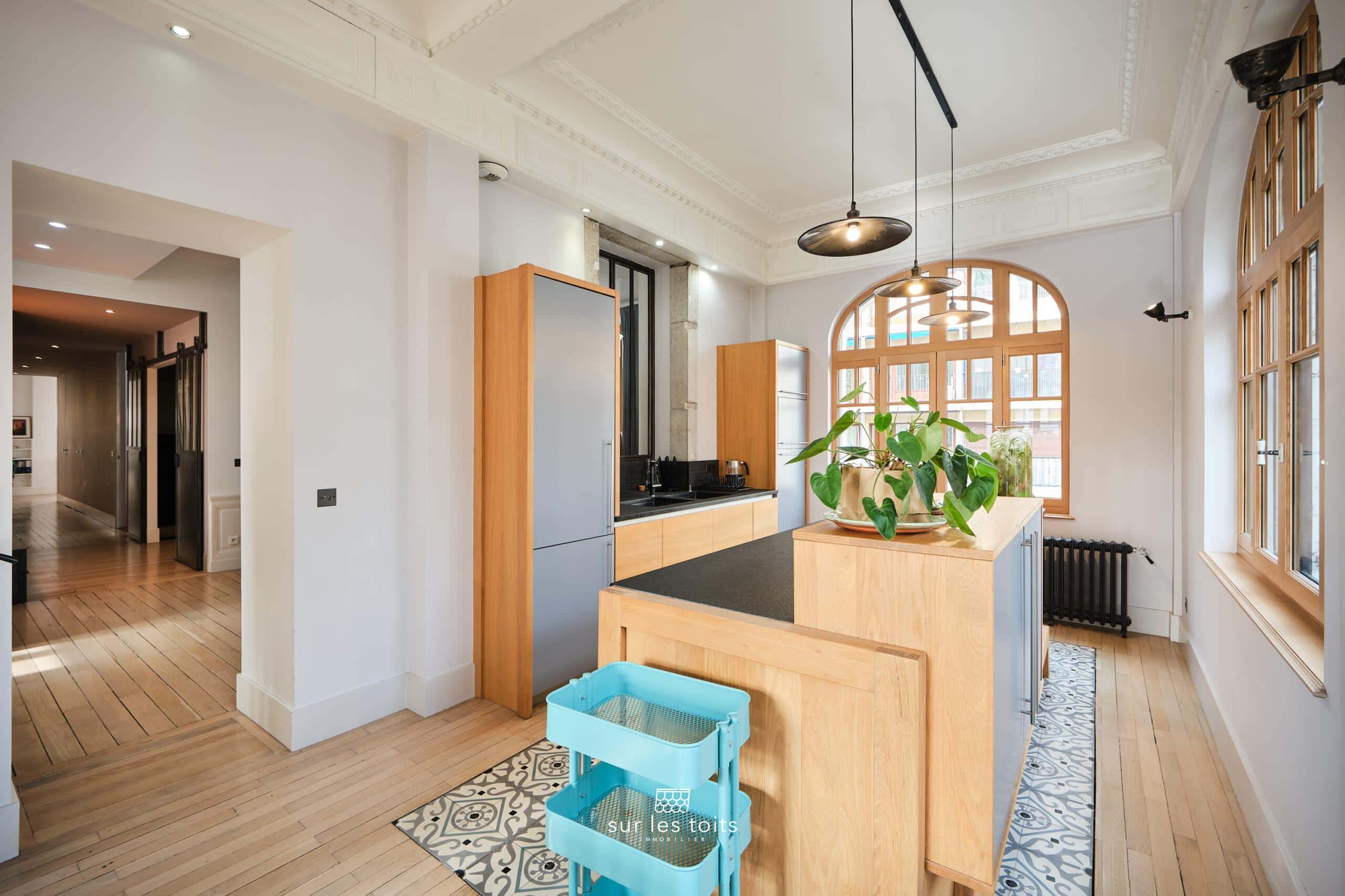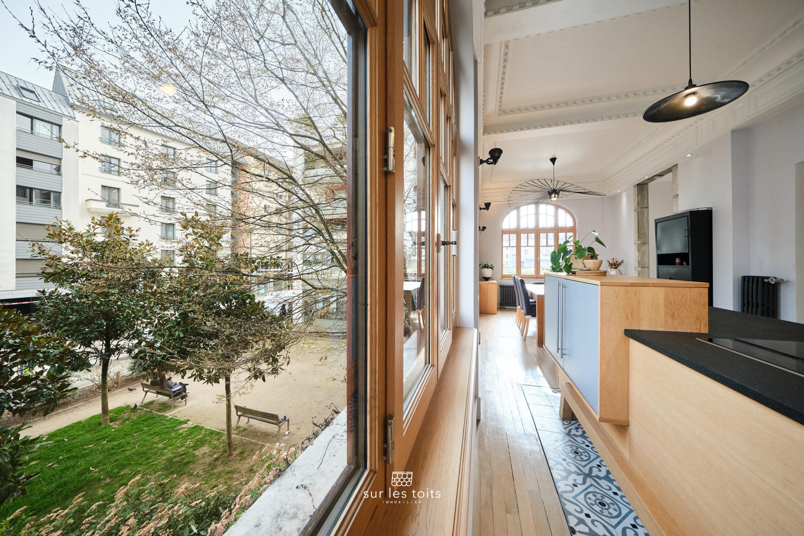 Ce bien a été repensé et rénové avec des matériaux de grande qualité et offre une parfaite harmonie entre le cachet de l’ancien et l’élégance contemporaine. Vous serez séduit par ses magnifiques parquets massifs rénovés, ses élégantes moulures, sa belle hauteur sous plafond ainsi que ses sublimes menuiseries en bois entièrement rénovées, qui soulignent le caractère et l’authenticité de cet appartement. Ses volumes généreux et sa luminosité naturelle en font un lieu de vie particulièrement agréable.