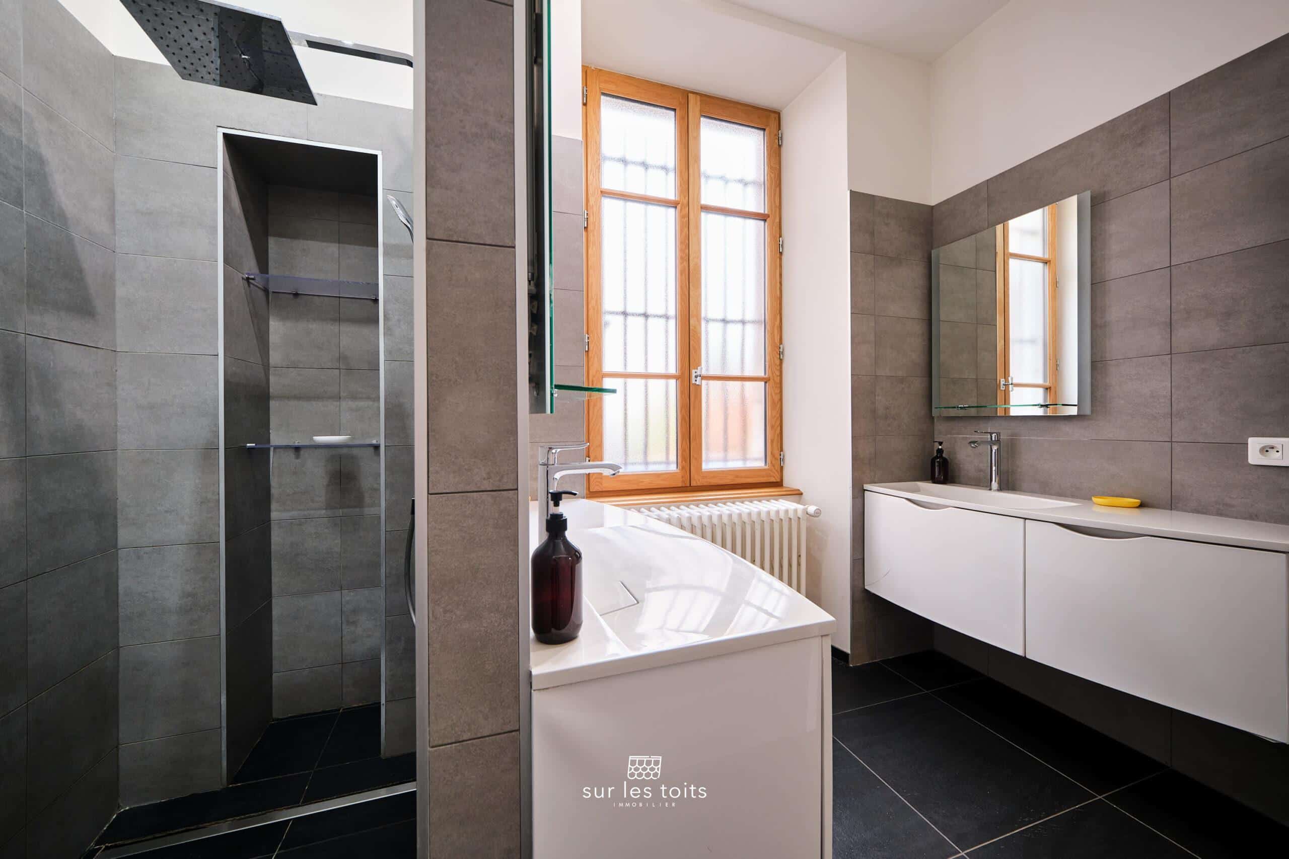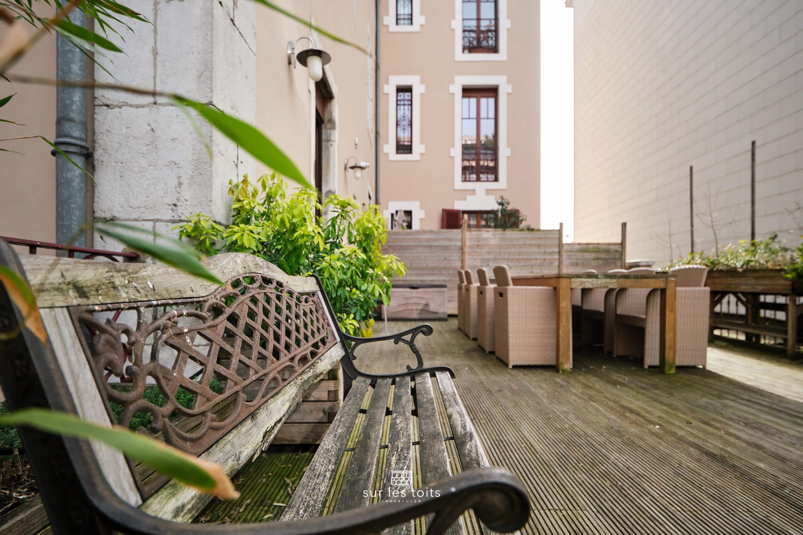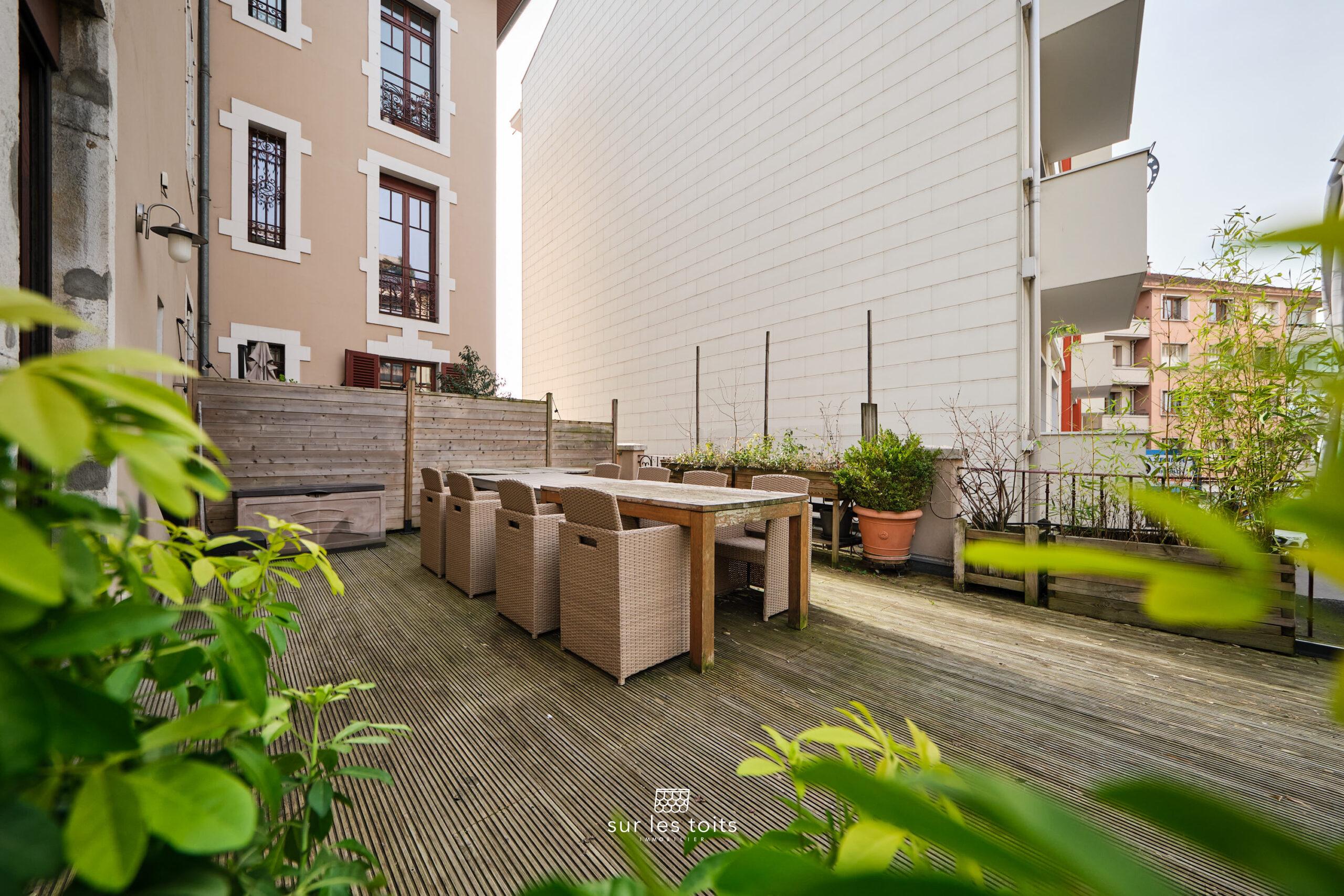 À l’extérieur, une superbe terrasse de 50 m², rare en centre-ville, constitue un véritable prolongement de l’appartement et permet de profiter pleinement de moments de détente en plein air.