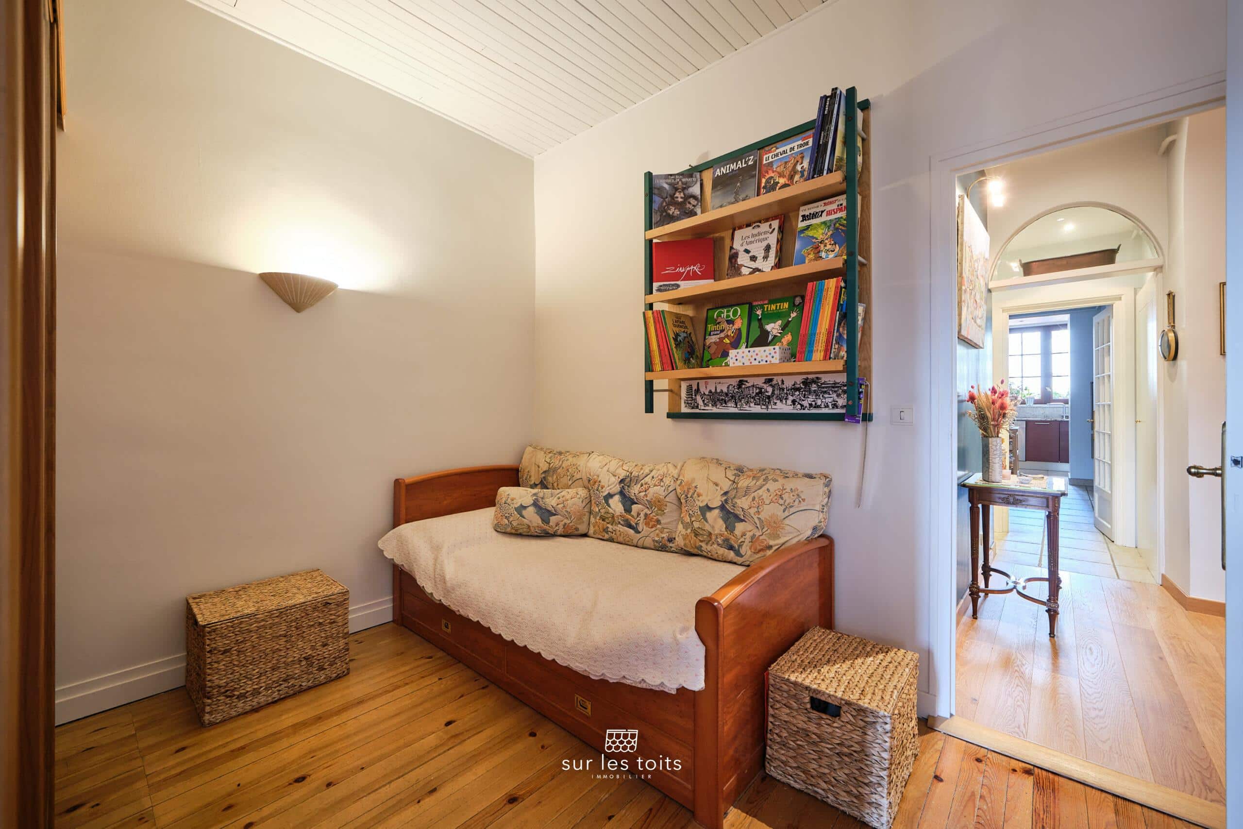 Côté nuit, vous trouverez deux chambres dont une coté cours, et une avec un bureau idéal pour le télétravail ou une chambre d’appoint, une salle de douche ainsi qu’un WC indépendant.