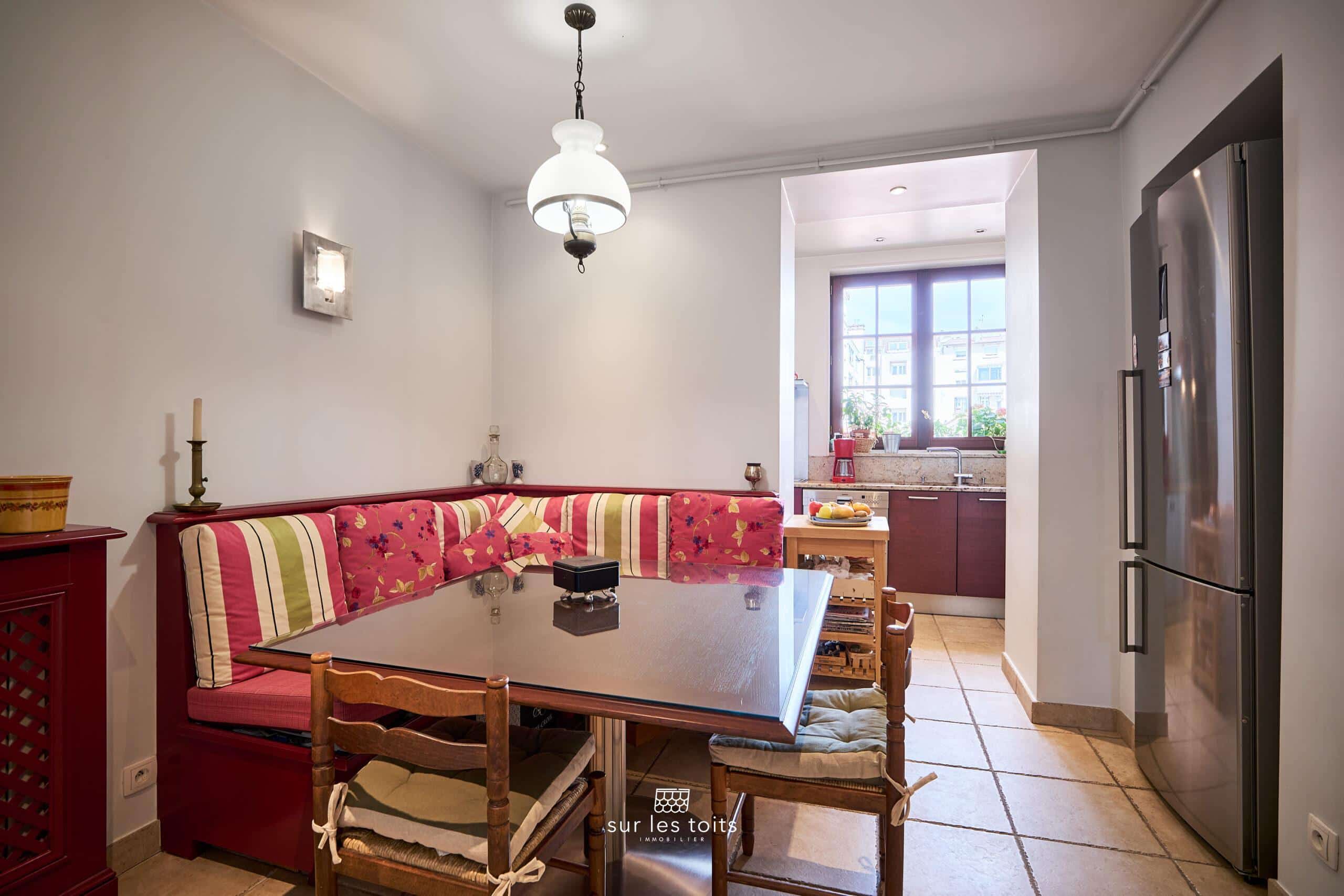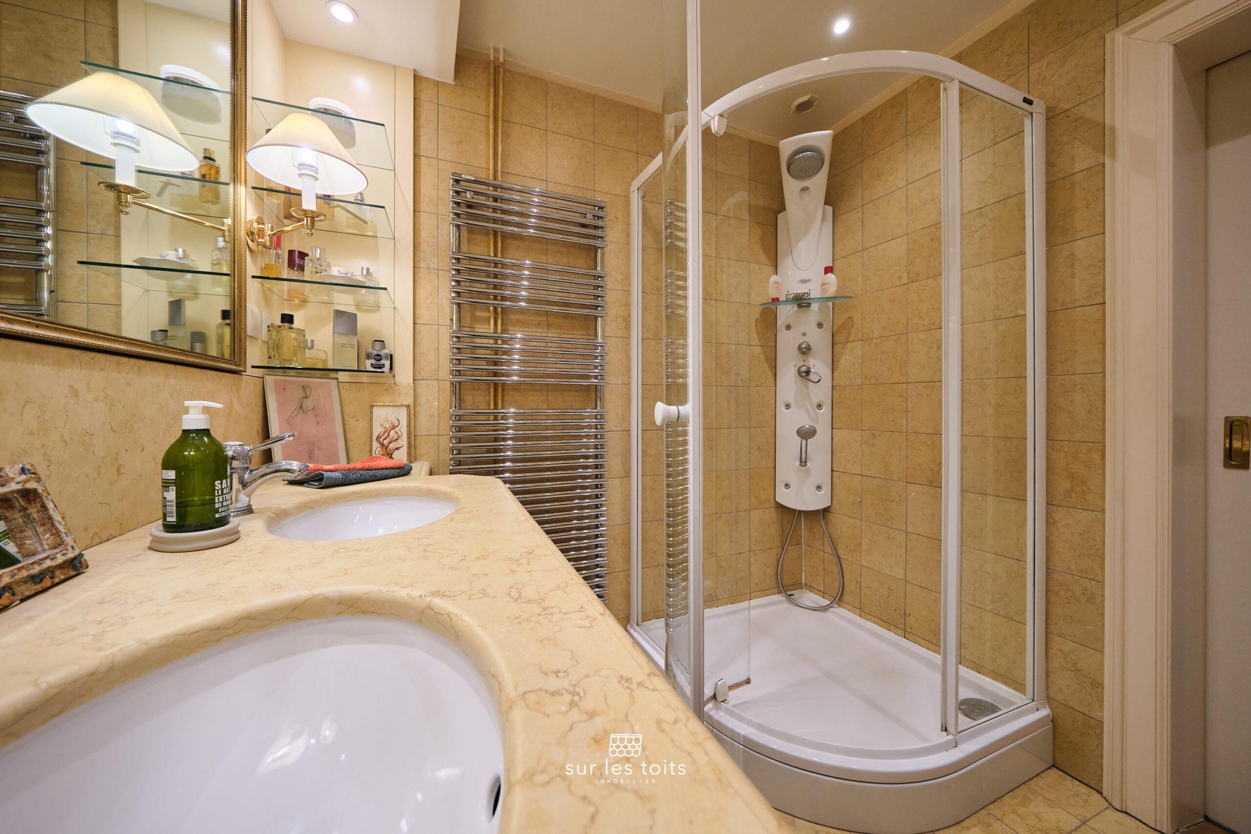 L’appartement offre de beaux volumes avec une grande entrée desservant un spacieux salon- séjour de plus de 37m² baigné de lumière grâce à son exposition plein Sud. Le parquet massif et les cheminées décoratives viennent sublimer le cachet de ce bien.