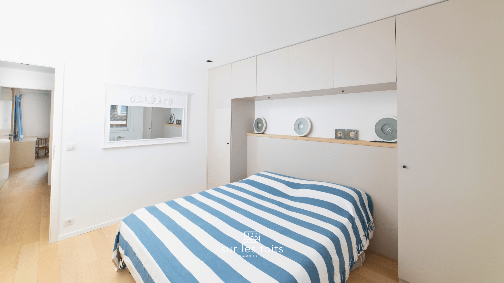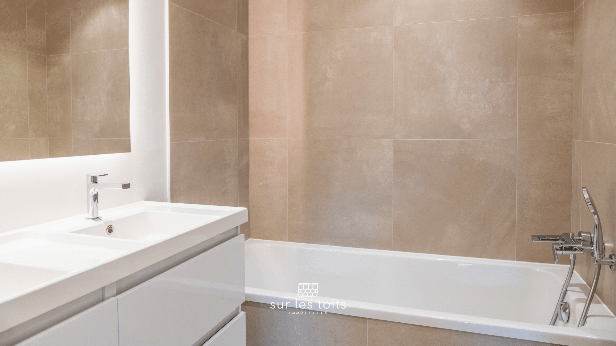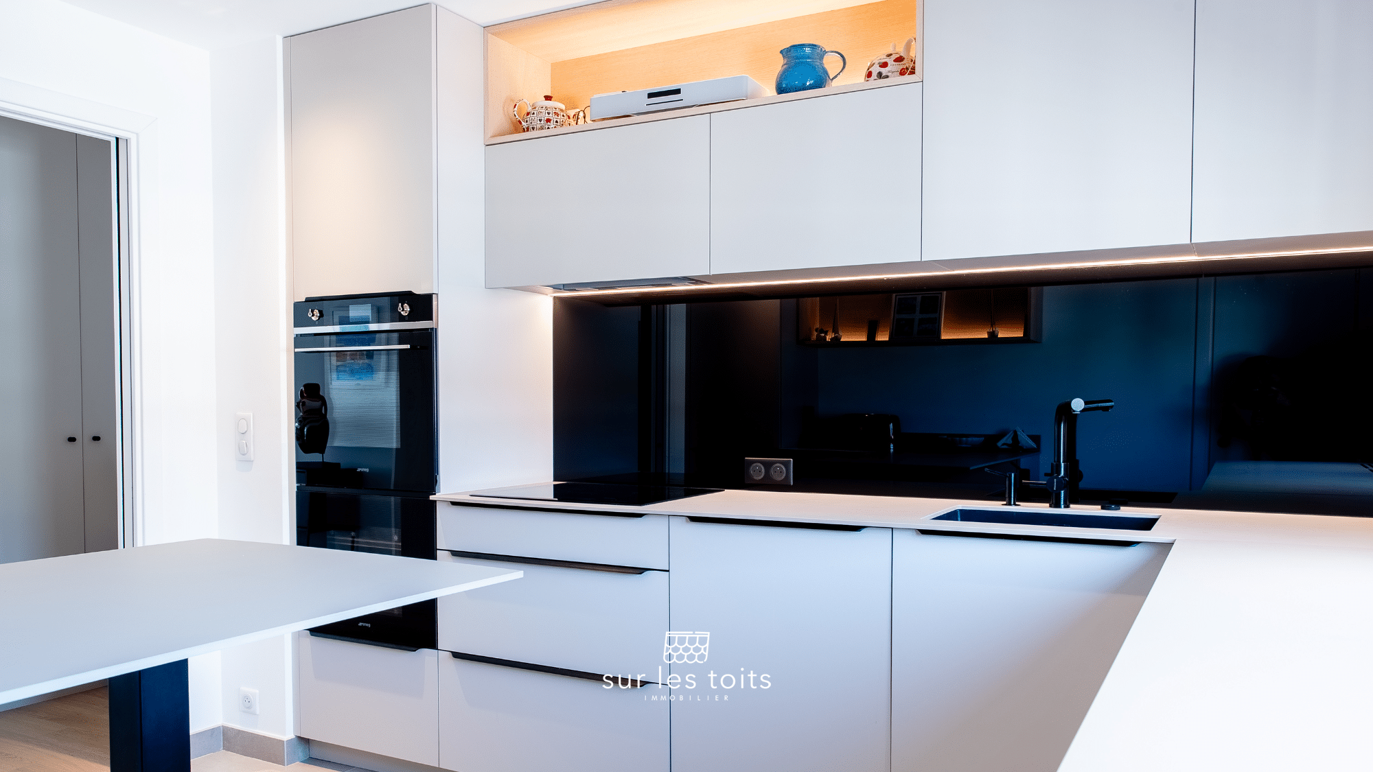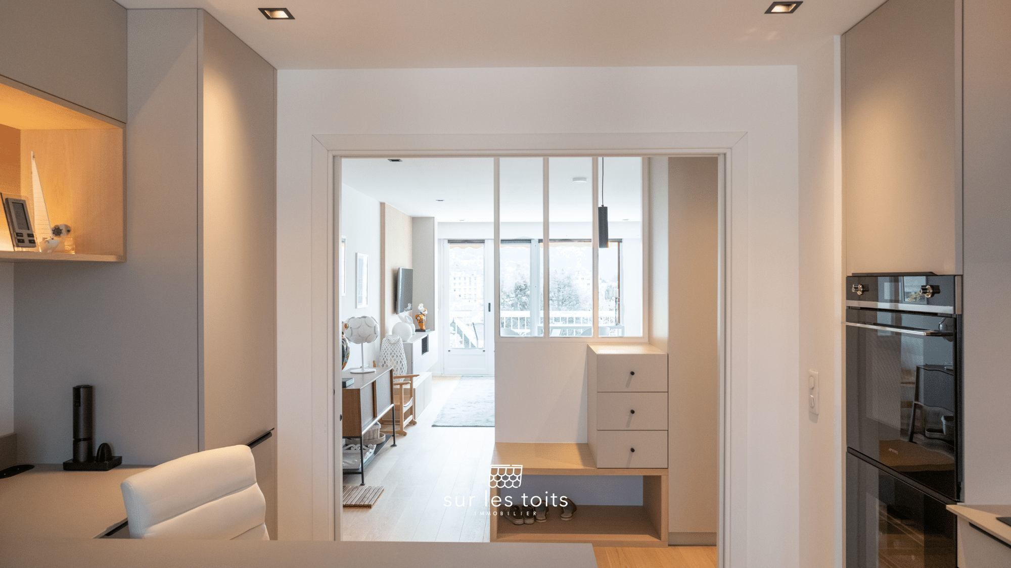 Traversant et lumineux, l’appartement a été entièrement rénové en 2023 avec des matériaux et des prestations de qualité au sein d’un agencement sur mesure. Les postes suivant bénéficient donc de toutes les garanties : électricité, menuiseries dressing, placards et cuisine sur-mesure, ouvertures, installation sanitaire et plomberie.