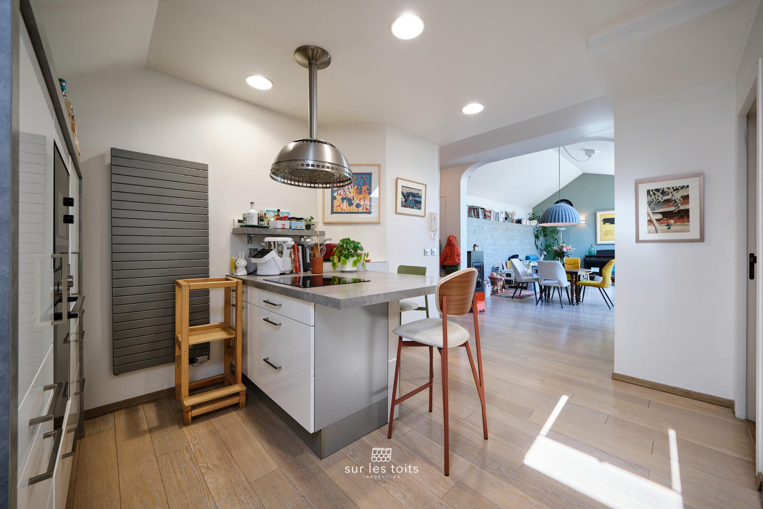 L’agence Sur les toits vous présente « Le Discret », un appartement 5 pièces situé au dernier étage d’une petite copropriété, en plein cœur de ville, tout en offrant un calme absolu.
