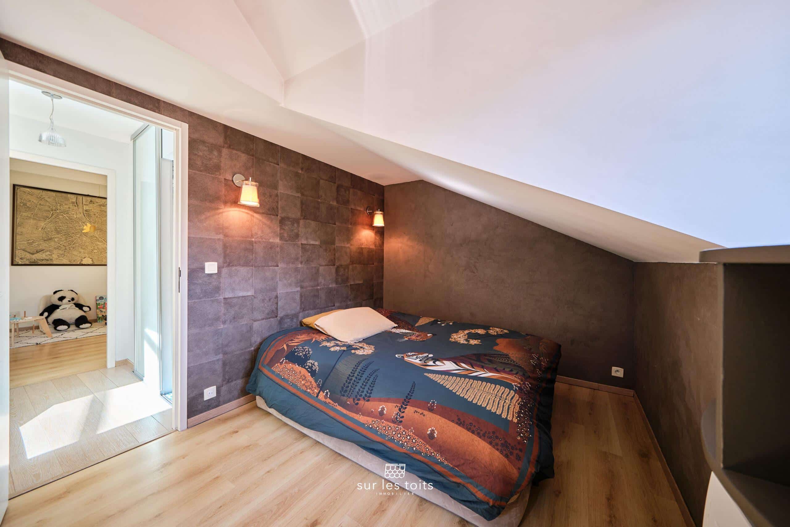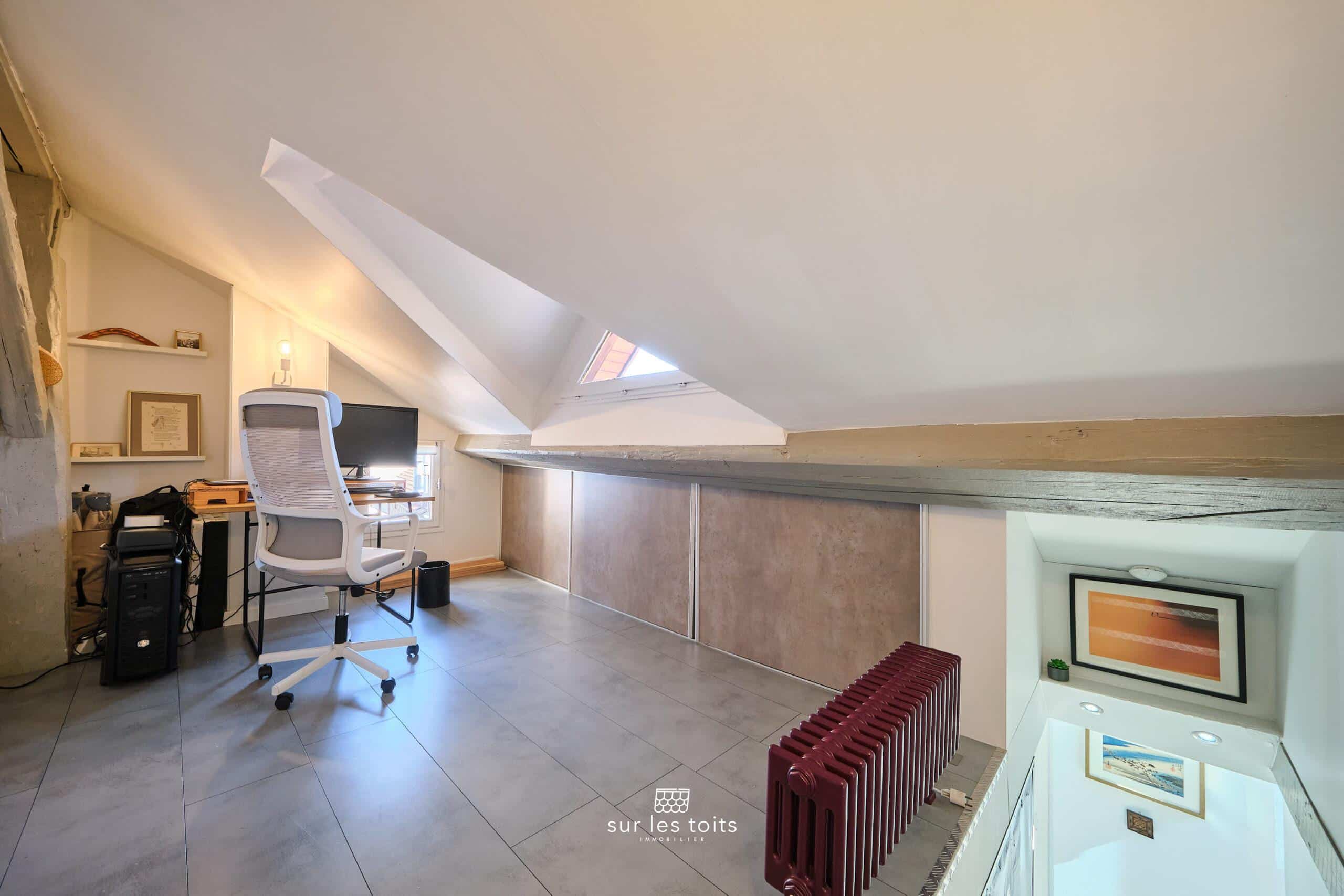 Un espace bureau / chambre d’amis aménagé dans les combles offre un espace complémentaire à adapter selon les besoins.