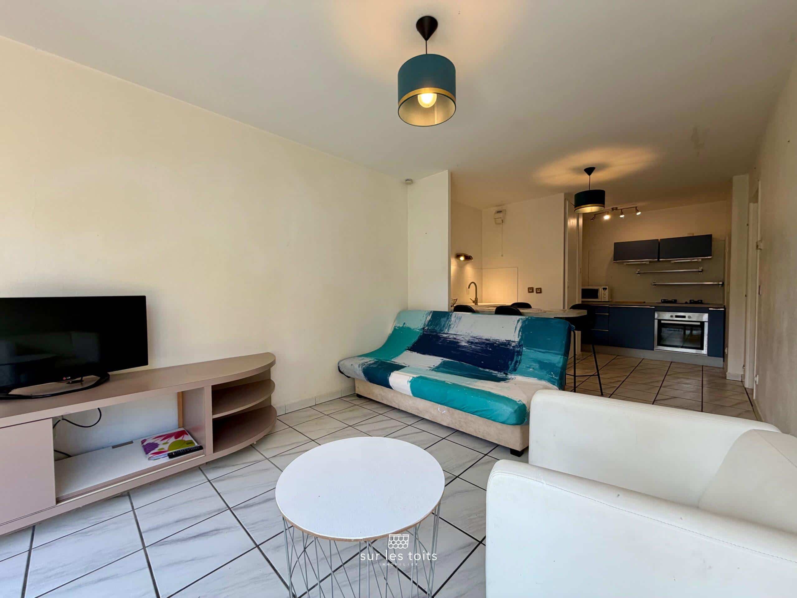 Il se compose d’une pièce de vie avec cuisine équipée, offrant un espace fonctionnel et agréable au quotidien. La chambre, séparée, dispose de rangements et propose un accès direct à la terrasse, permettant de profiter facilement de l’extérieur.