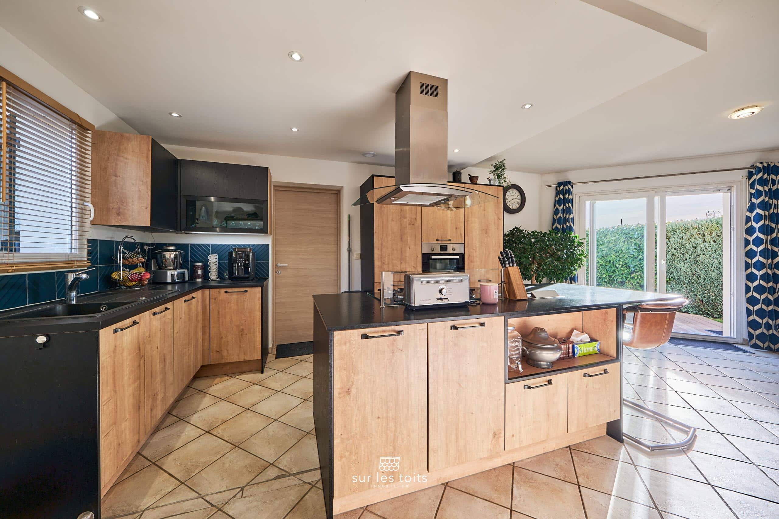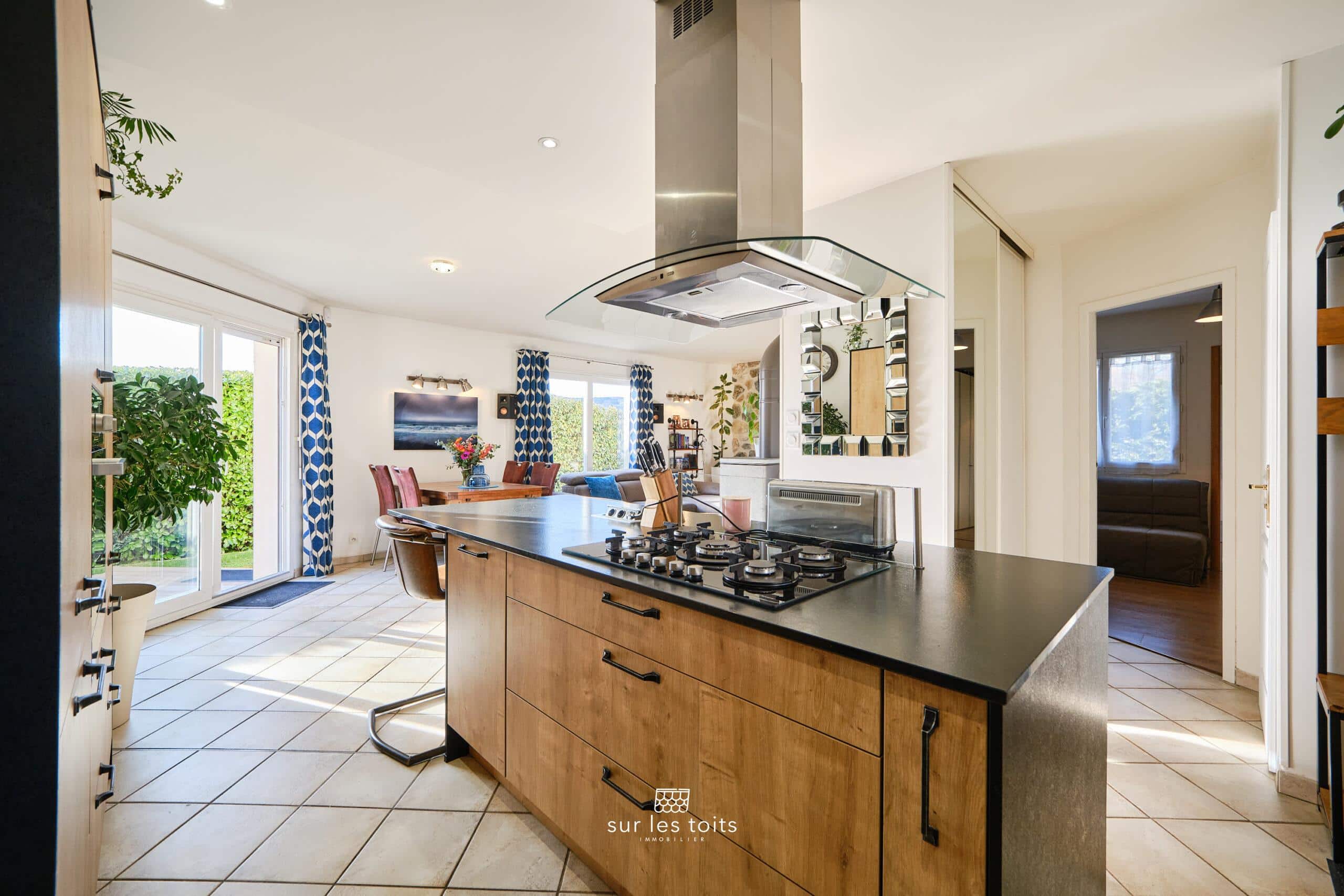 La cuisine équipée, ouverte sur le salon, est idéale pour les moments partagés.
