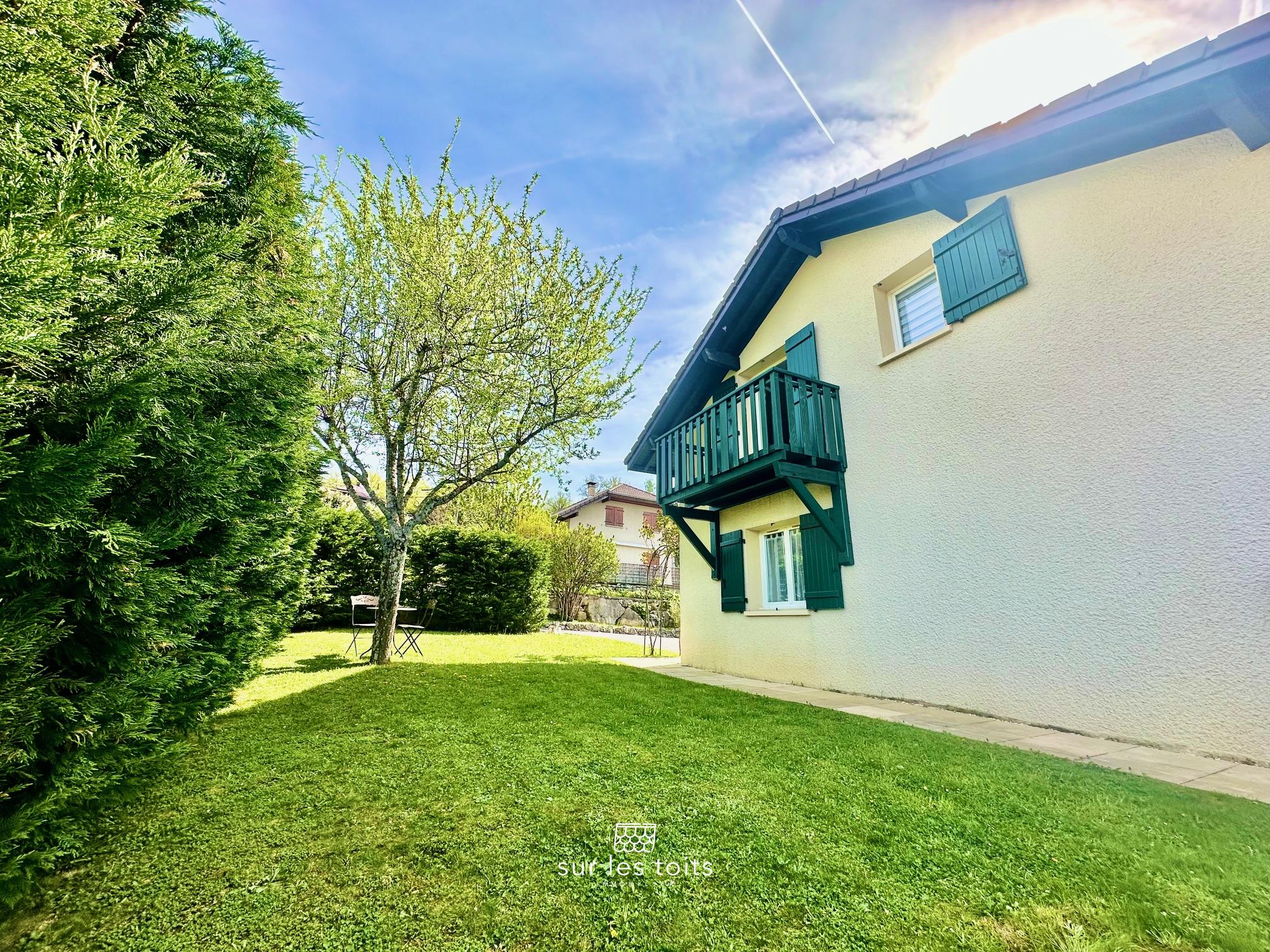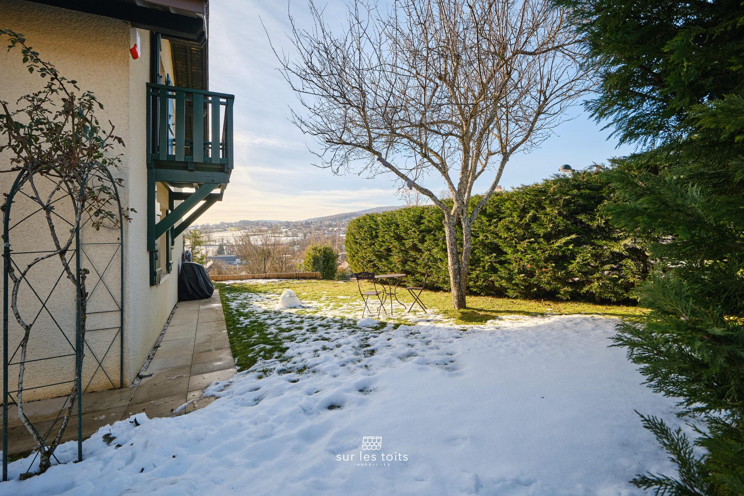 Cet espace du jardin est orienté Sud/Ouest et offre une vue magnifique sur les montagnes.