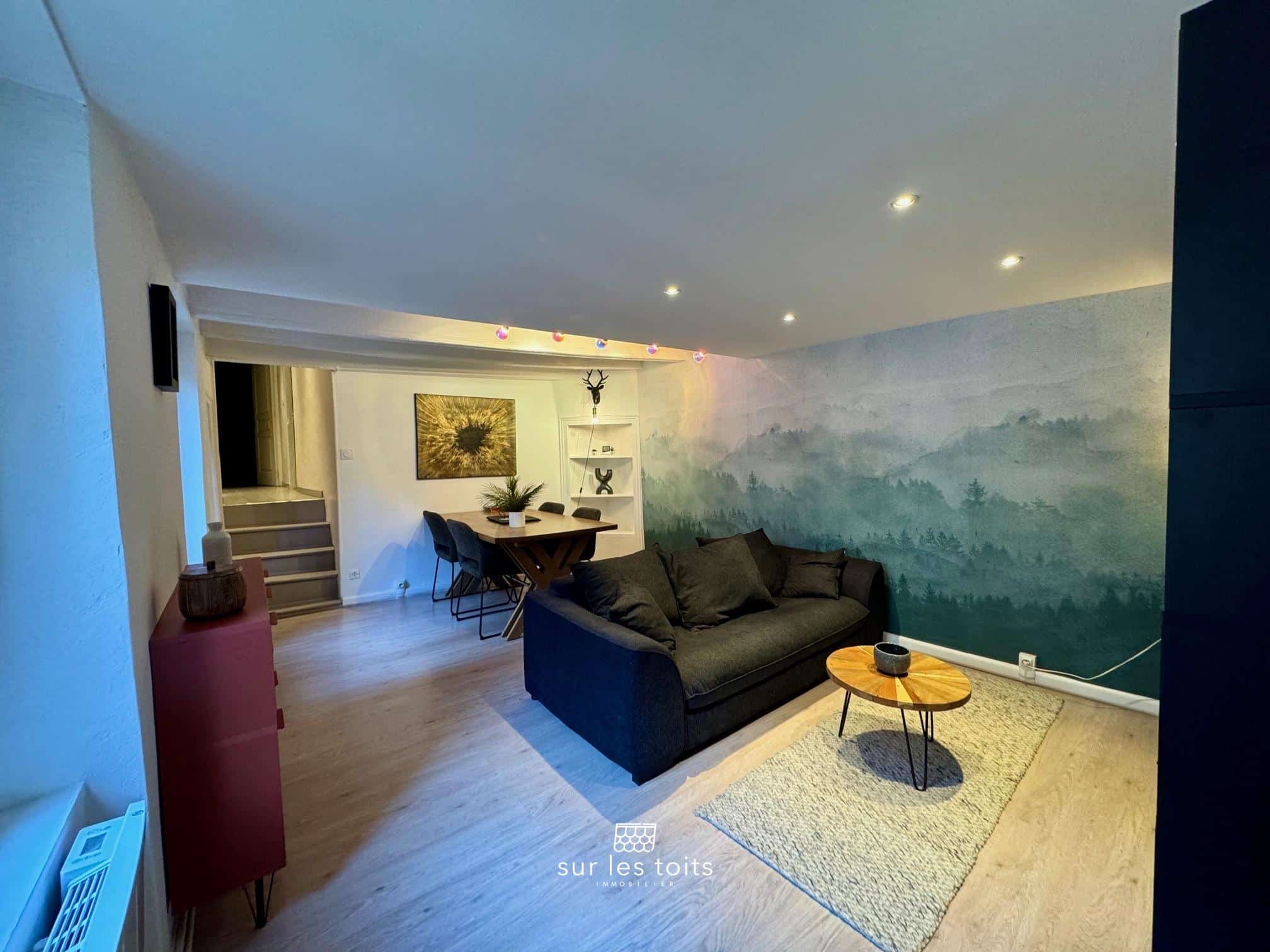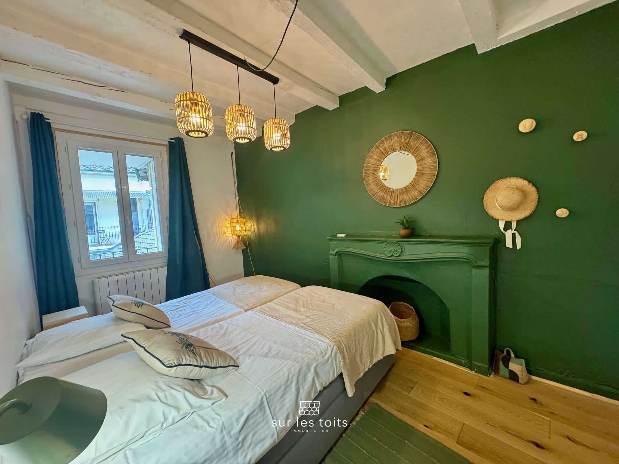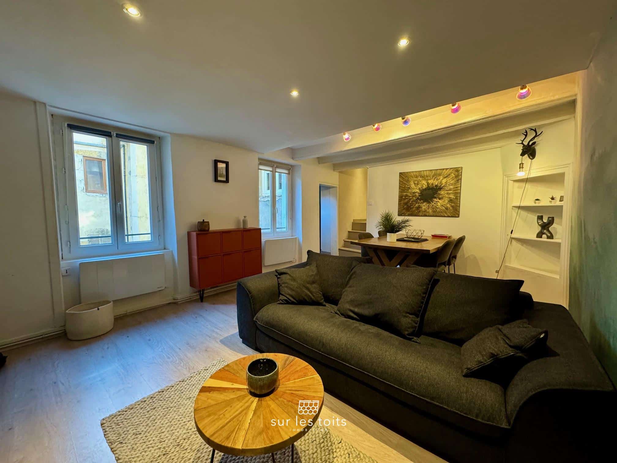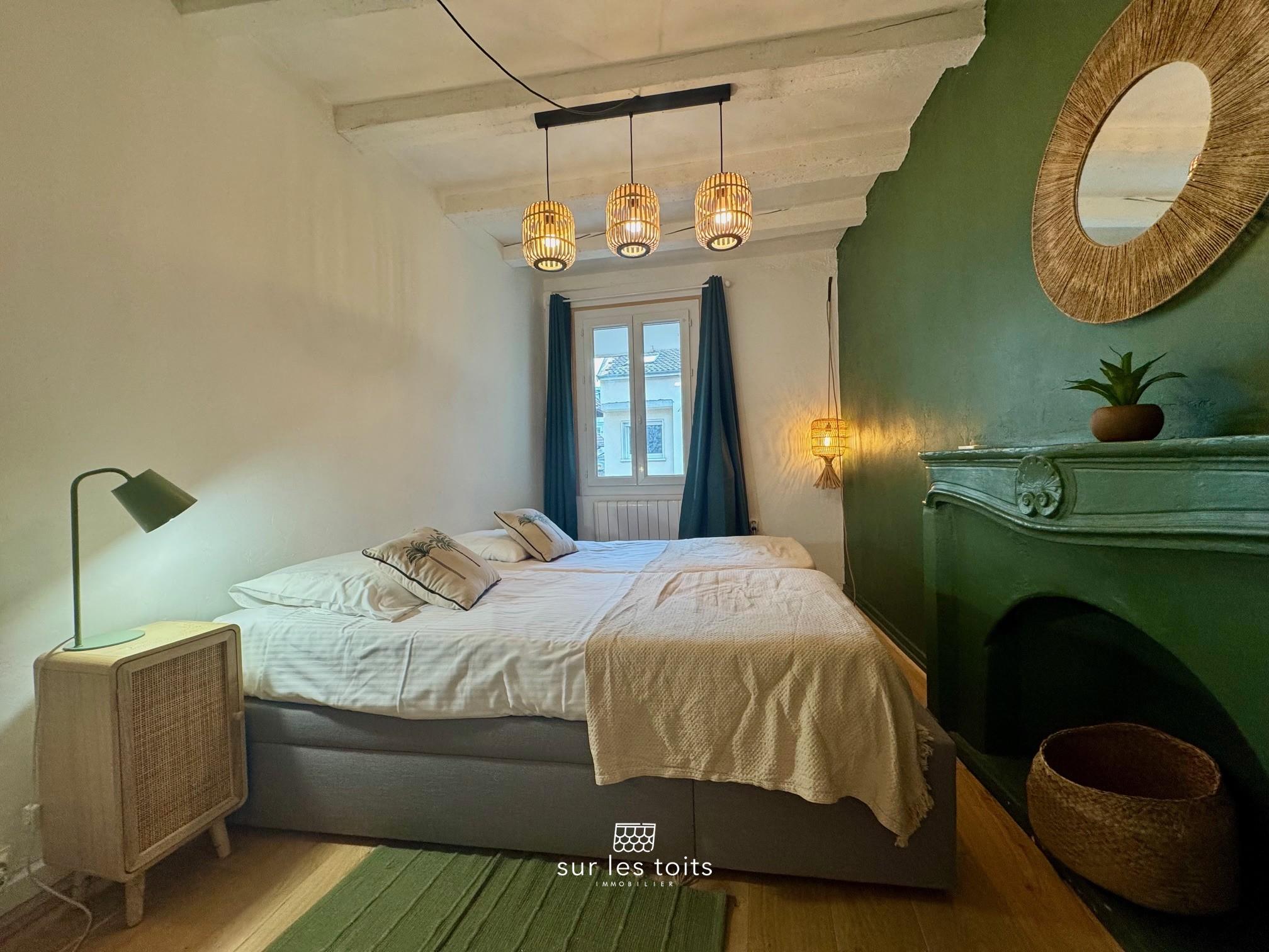 Apprécié pour le charme de la vieille ville et la proximité immédiate de toutes les commodités, cet appartement conserve le caractère de l’ancien avec ses poutres apparentes et ses cheminées d’origines décoratives.