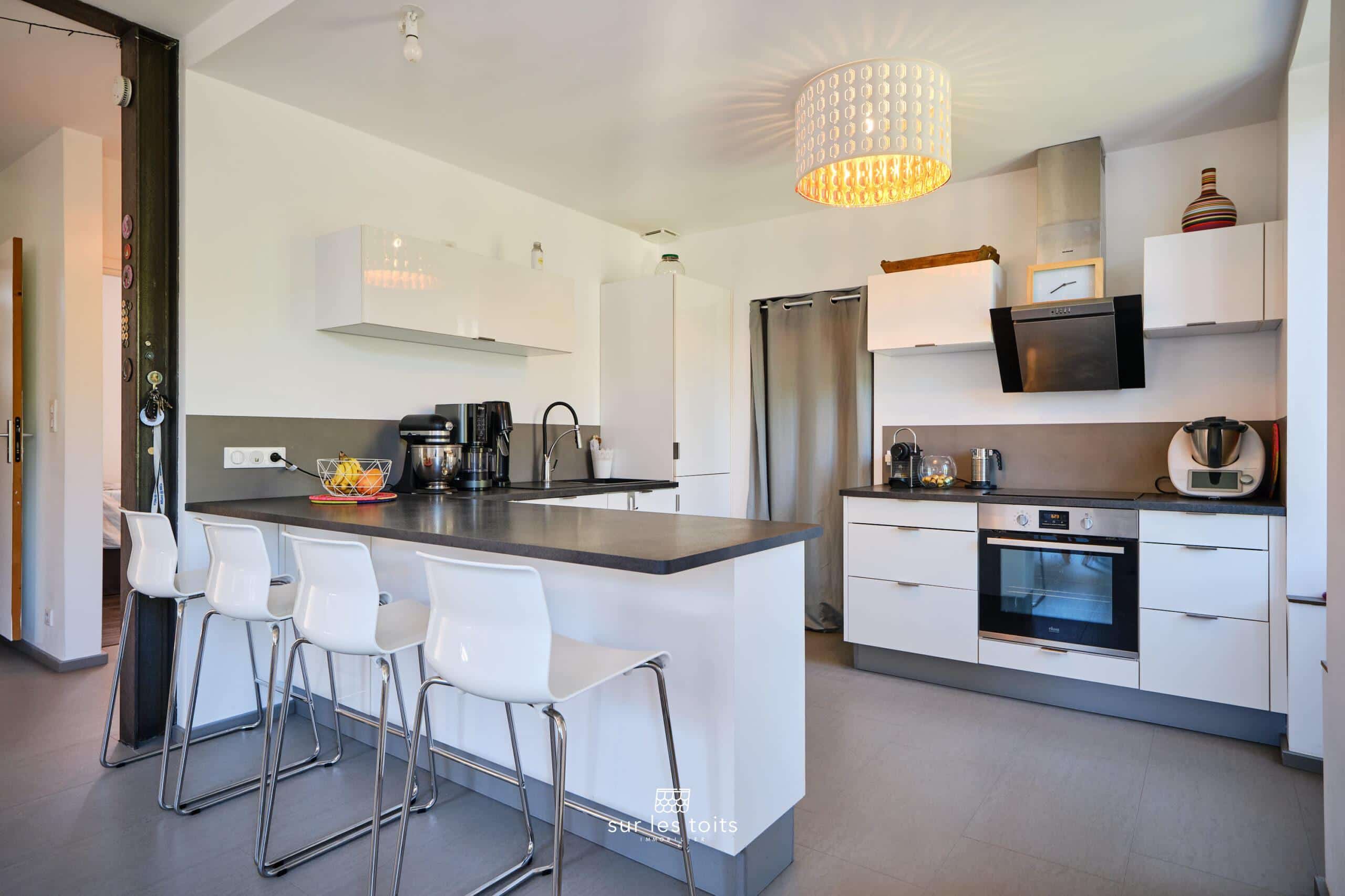Dès l’entrée, la pièce de vie de 46 m² séduit par sa luminosité et ses volumes généreux. Le séjour et la cuisine ouverte composent un espace convivial, naturellement prolongé par une terrasse de 12 m², idéale pour les beaux jours.