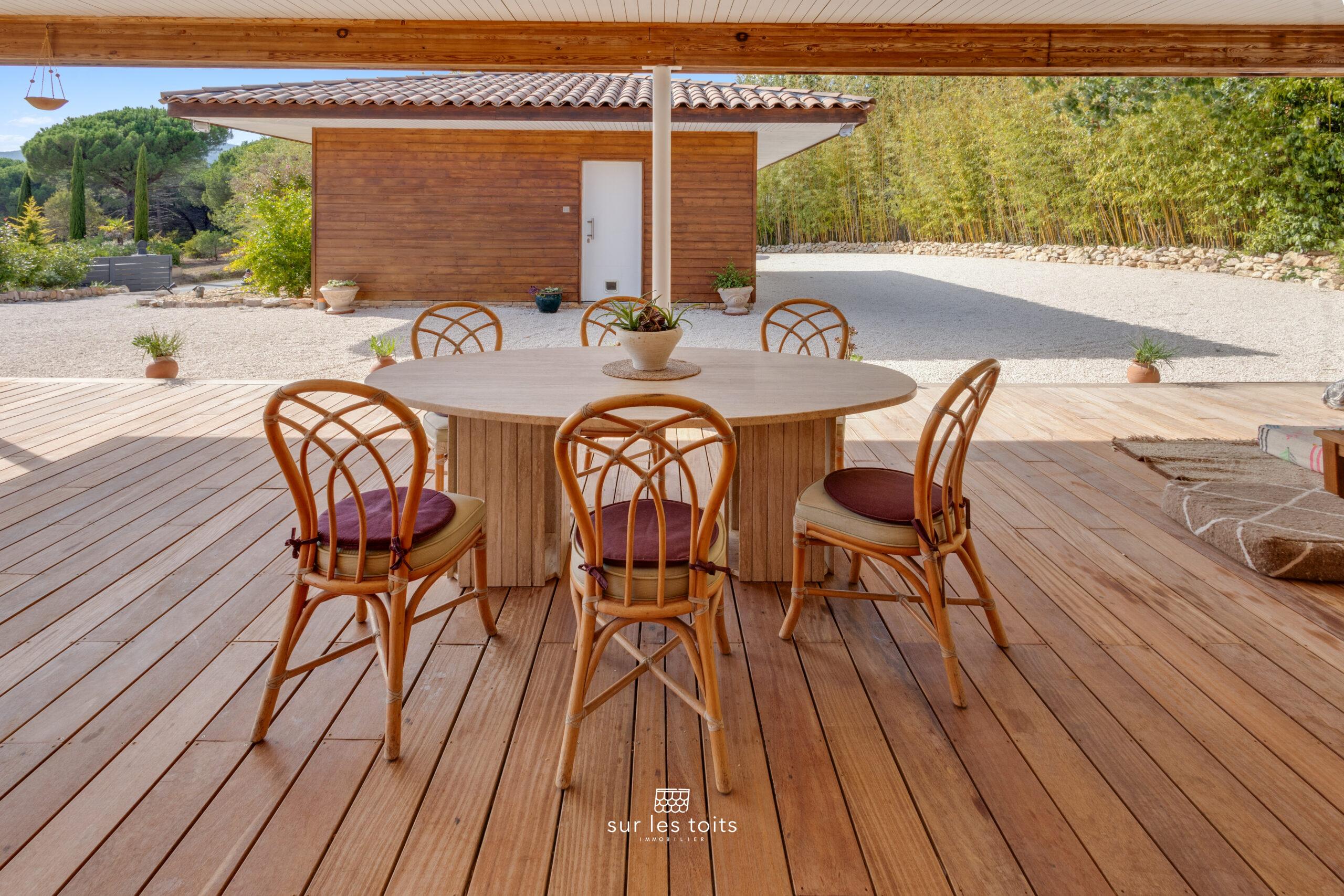 L’agence sur les toits vous présente « L’ile au zen » superbe longère contemporaine d’exception nichée dans un écrin de verdure de 4 570 m² à Bagnols-en-Forêt. Construite en 2003, cette propriété de 225 m2, sans vis-à-vis s’inspire de l’esprit Zen, avec un parc paysagé et une vue dominante sur les gorges du Blavet et du col Rousse, véritable havre de paix et de sérénité.